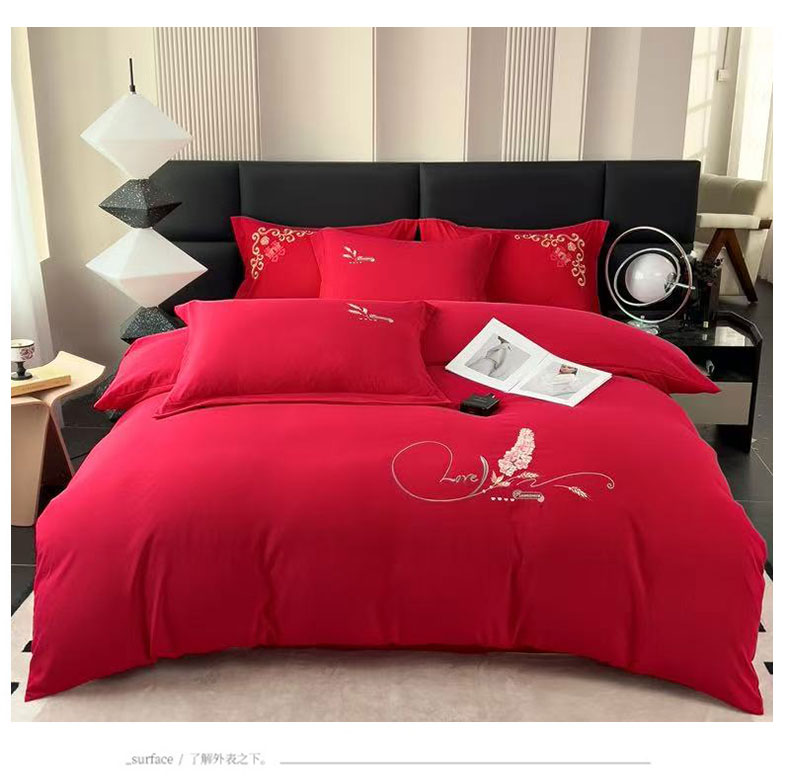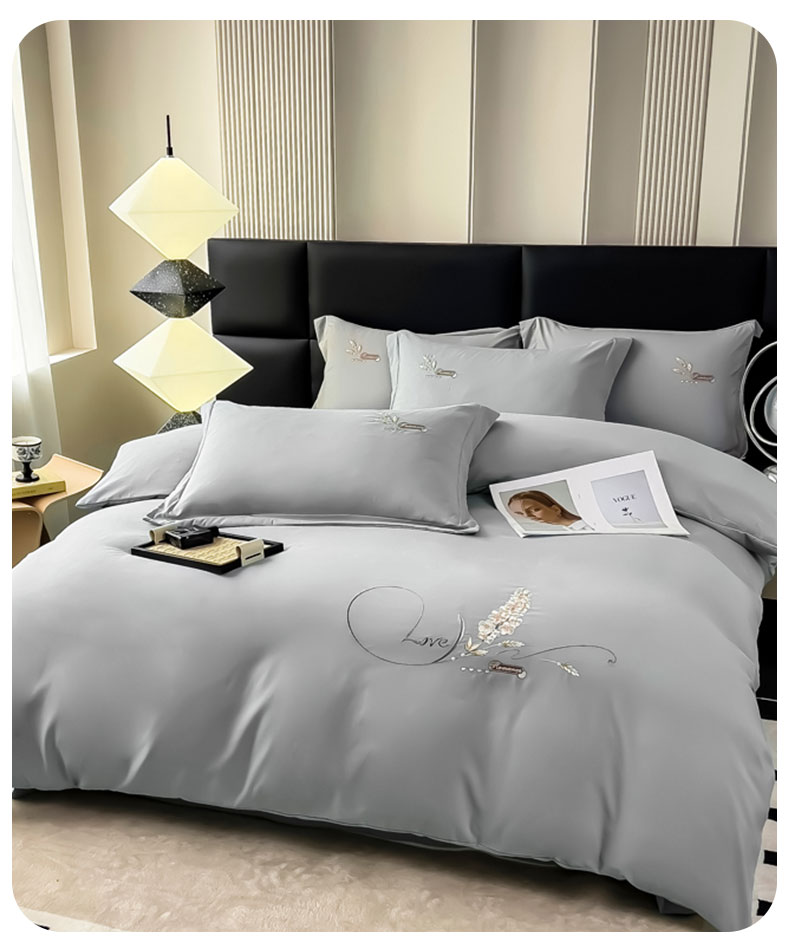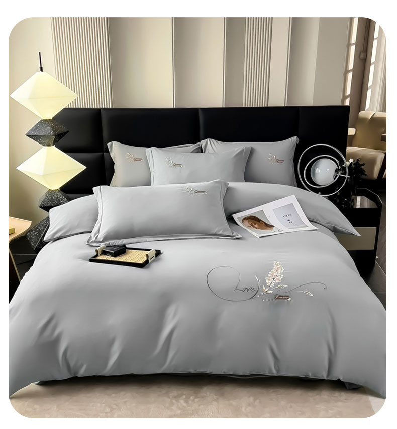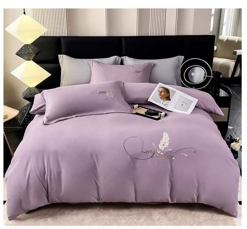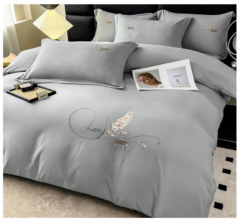 (总)曲之慕 2025新品四季款高端刺绣四件套简约可水洗轻奢纯色刺绣四件套--大麦