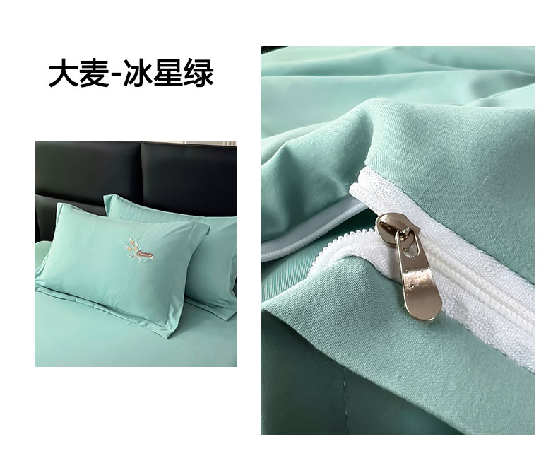 商品名称:(总)曲之慕 2025新品四季款高端刺绣四件套简约可水洗轻奢纯色刺绣四件套--大麦