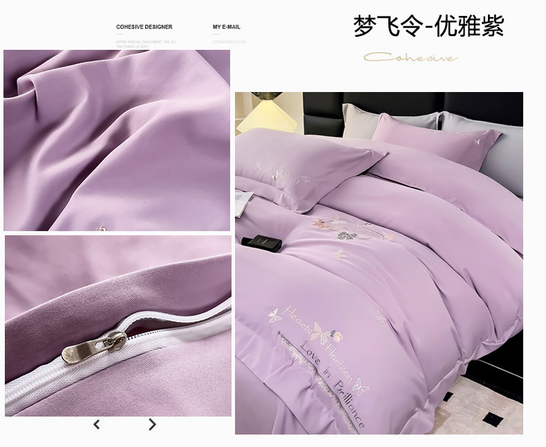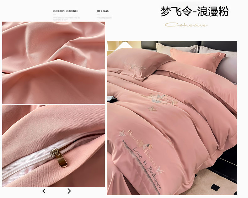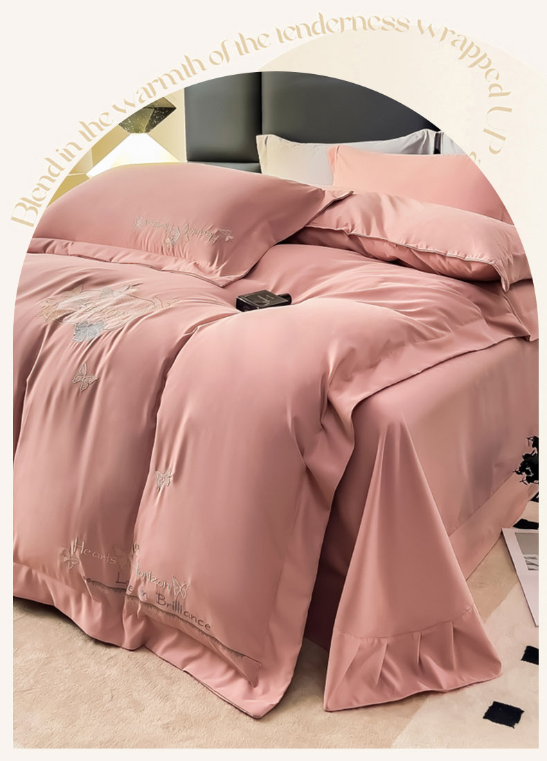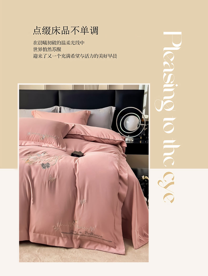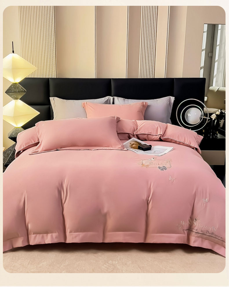 (总)曲之慕 2025新品四季款高端刺绣四件套简约可水洗轻奢纯色刺绣四件套--梦飞令