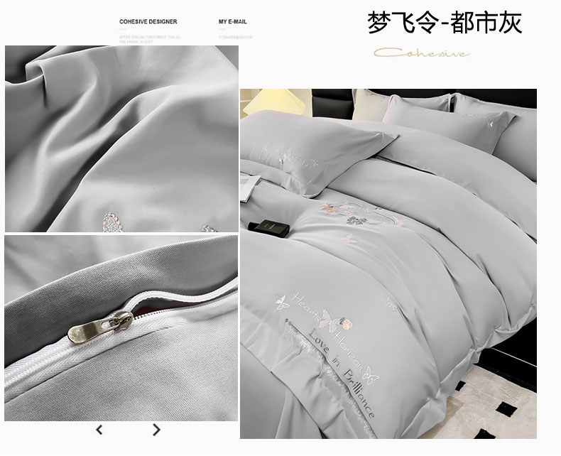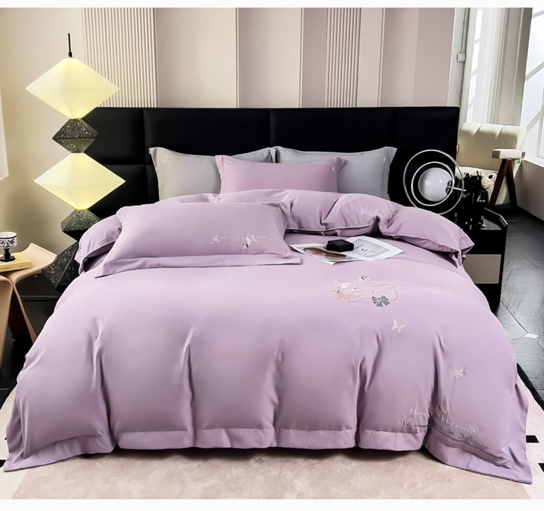 商品名称:(总)曲之慕 2025新品四季款高端刺绣四件套简约可水洗轻奢纯色刺绣四件套--梦飞令