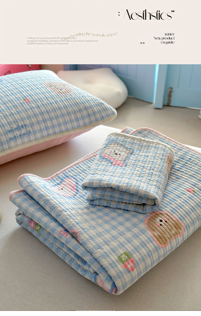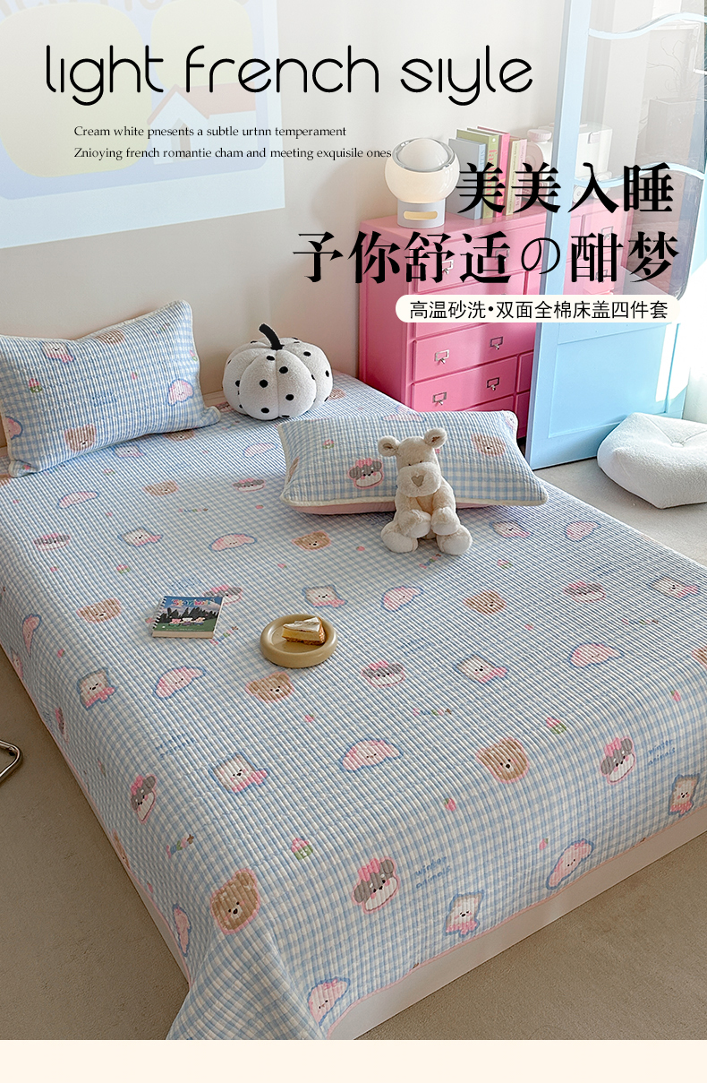 • 91家纺网 家纺一手货源 找家纺 麦伦家居 2025新款高温砂洗全棉床盖印花床盖 甜蜜小狗