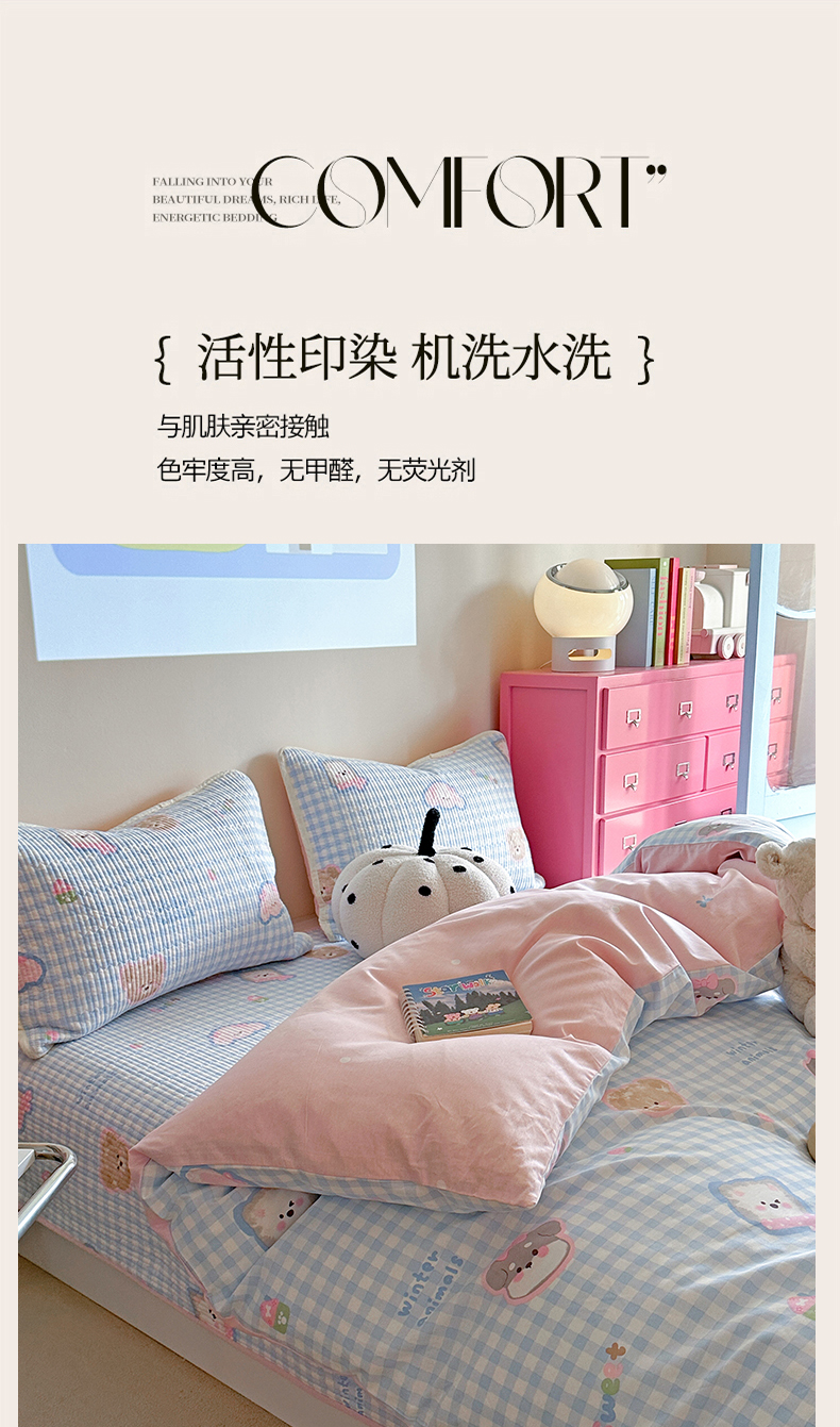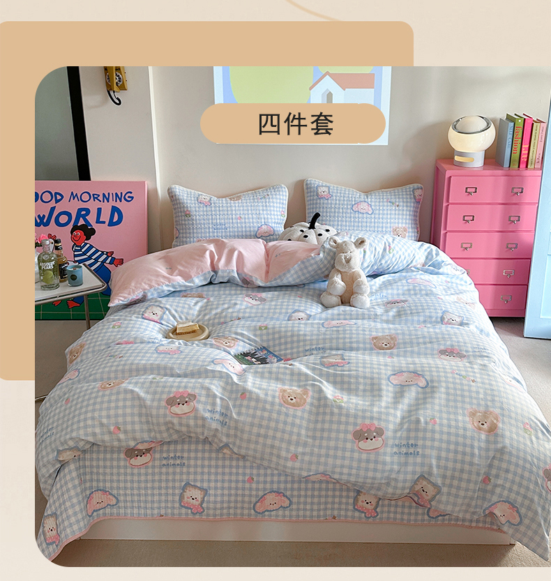 (总)麦伦家居 2026春夏新品13372全棉卡通小清新四件套,春日花语,焦糖小熊,笔记本,宾果时光,果子象,含羞草,蝴蝶结花朵粉,机灵猫,咖啡猫,快乐小星星,蕾丝小兔,漫漫花香,莓果熊,平安狗狗,时光里,线条汪汪,小玫瑰紫,紫樱桃