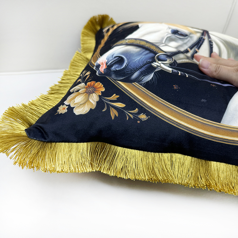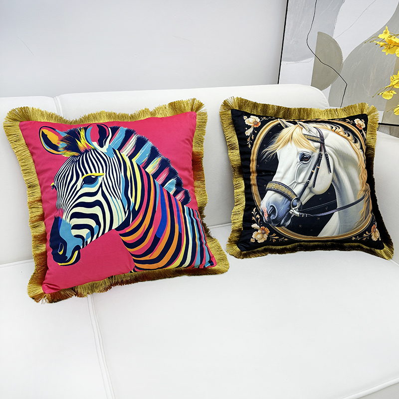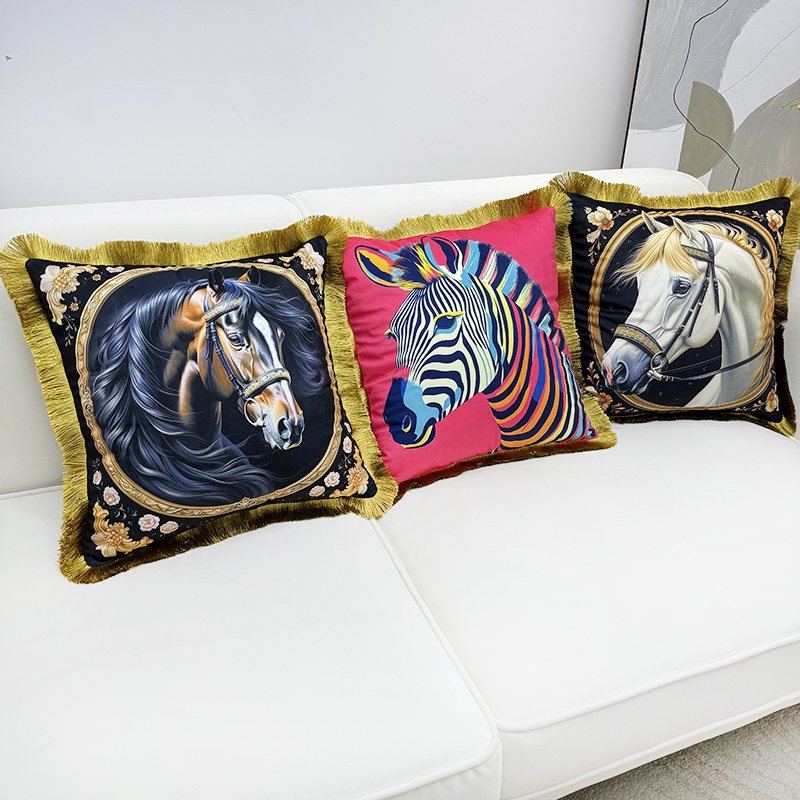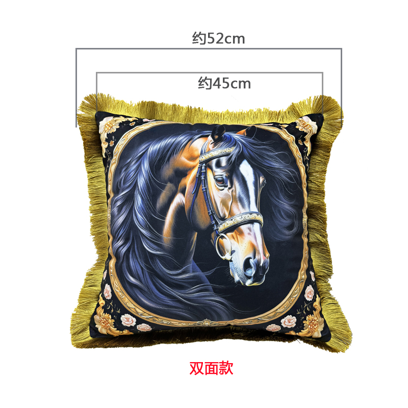 (总)爱家居 2025新款欧式美式沙发抱枕套靠垫套轻奢流苏白马绒抱枕含芯床头靠枕垫定制,汗血宝马,皇家白马,时尚斑马