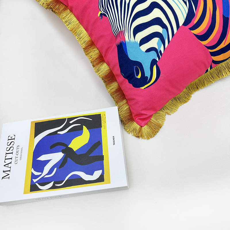 爱家居 2025新款欧式美式沙发抱枕套靠垫套轻奢流苏白马绒抱枕含芯床头靠枕垫定制 时尚斑马
