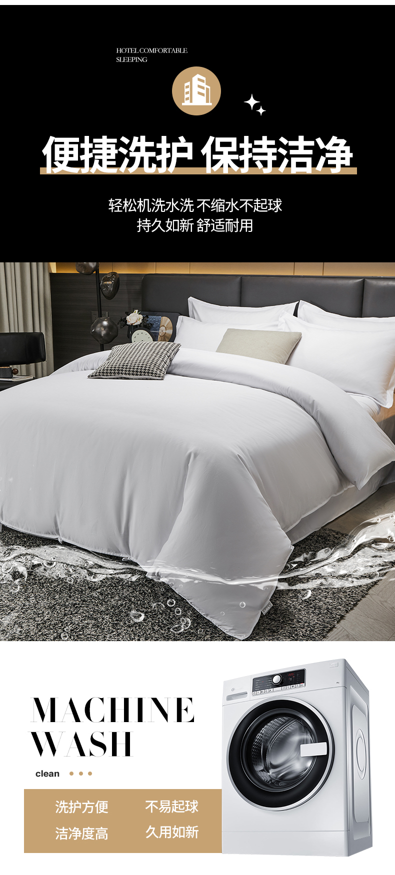 商品名称:小老弟 2025新款星级酒店纯色酒店四件套酒店布草 珍珠白系带款