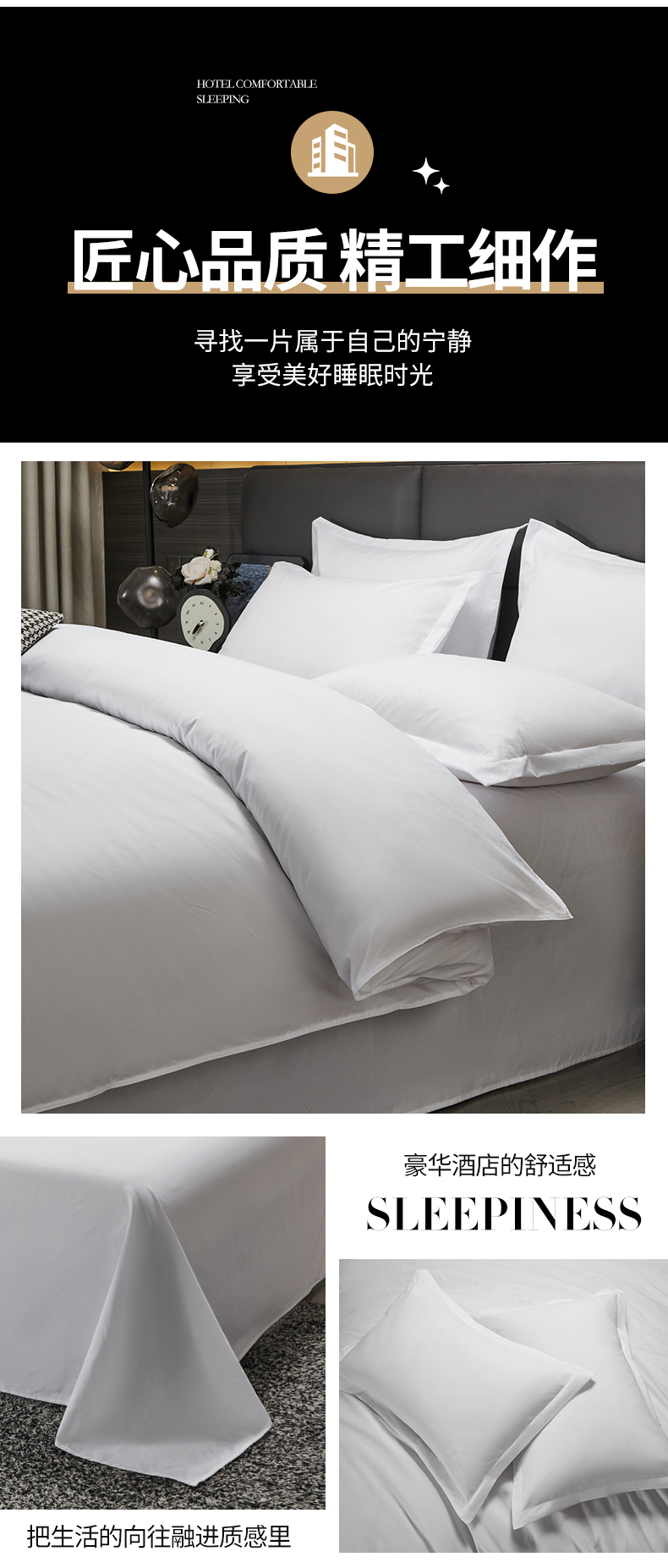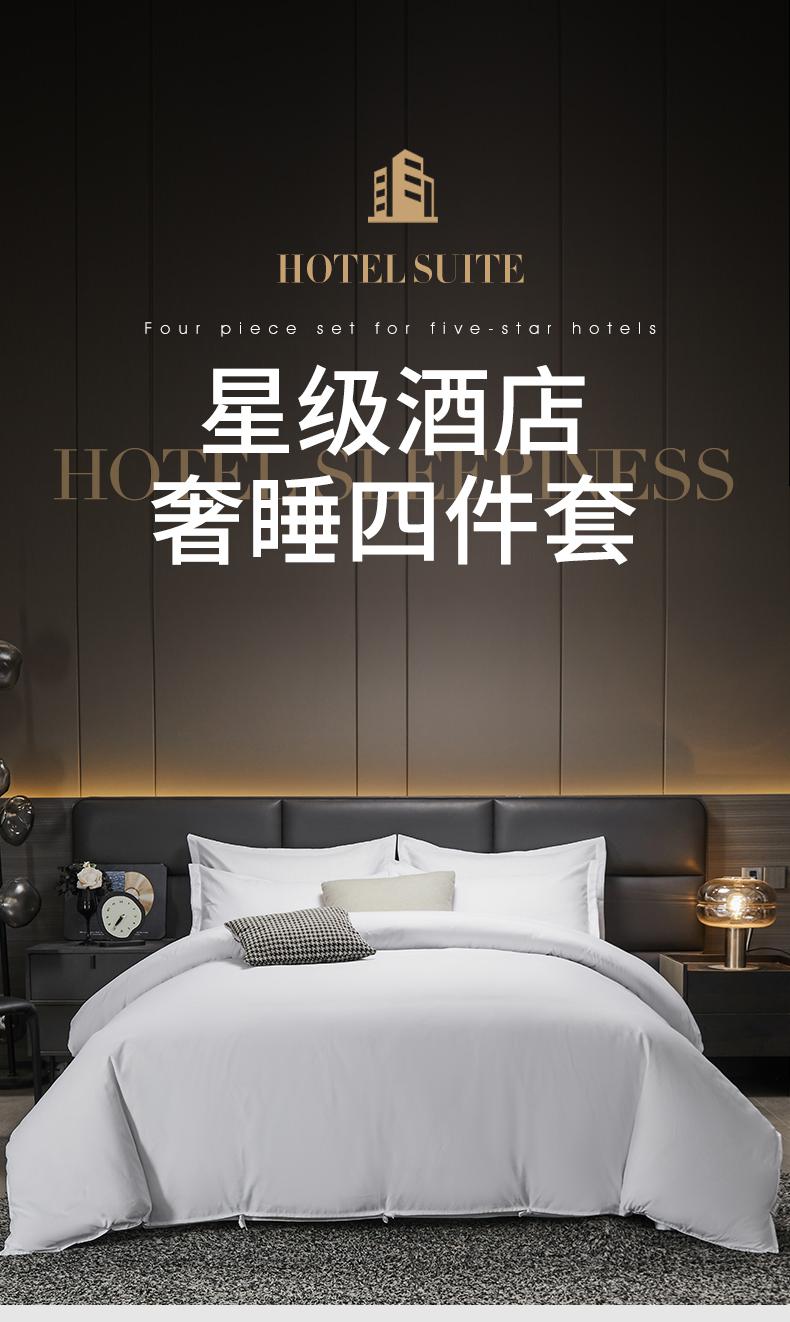(总)小老弟 2025新款酒店用品酒店布草全棉纯棉60S酒店四件套,白色