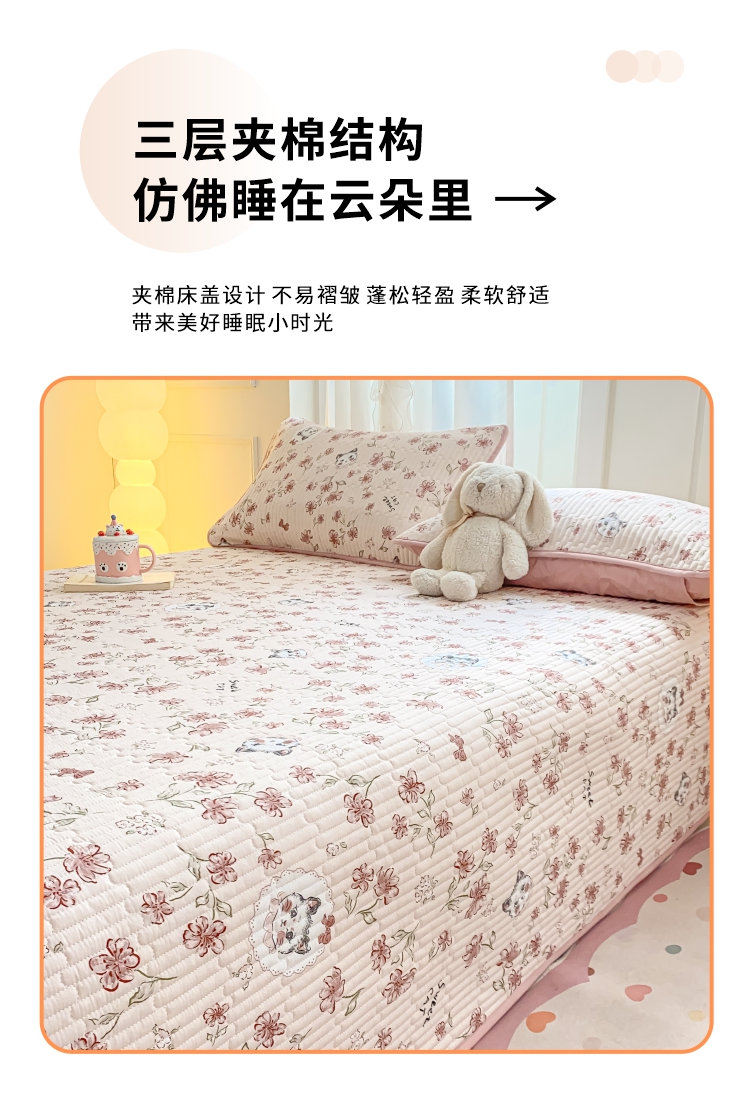 • 91家纺网 家纺一手货源 找家纺 顺顺家纺 2025新款全棉卡通夹棉床盖 花枝夜梦