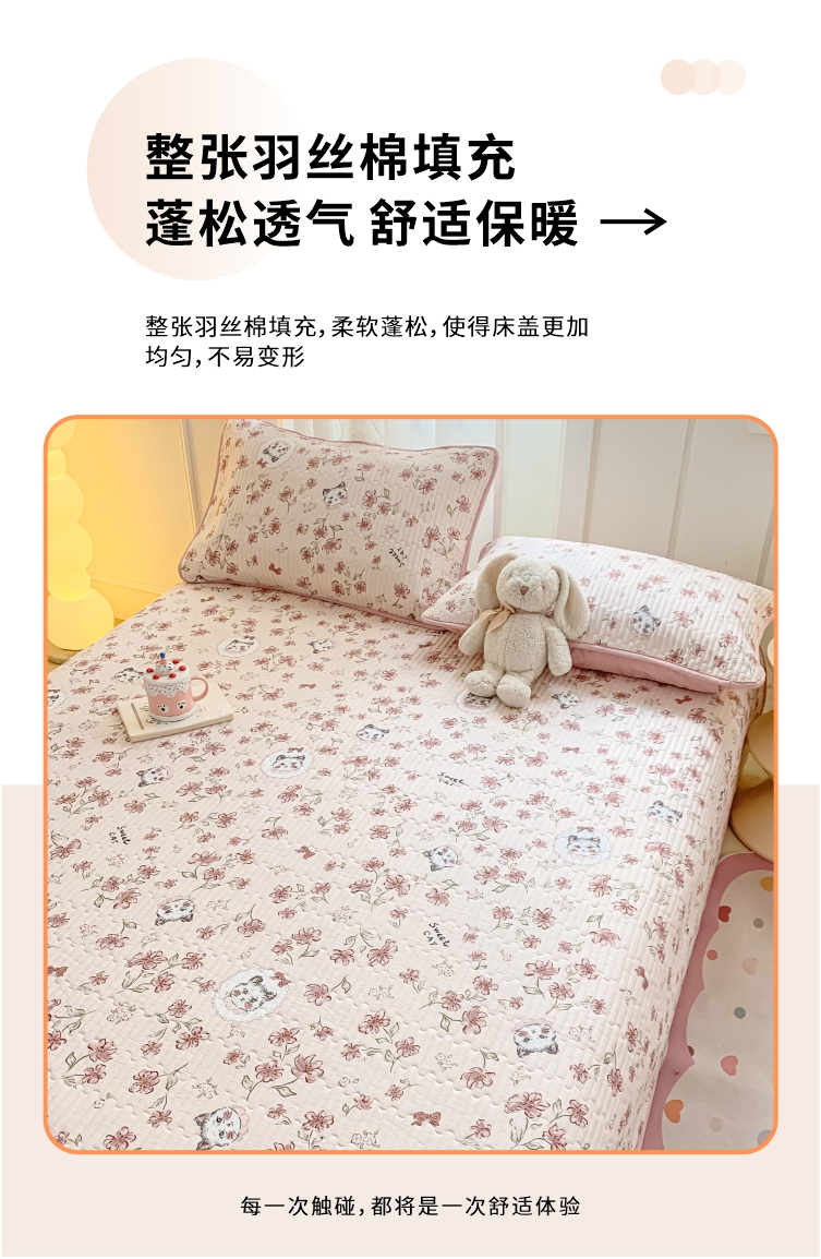 顺顺家纺 2025新款全棉卡通夹棉床盖 花枝夜梦