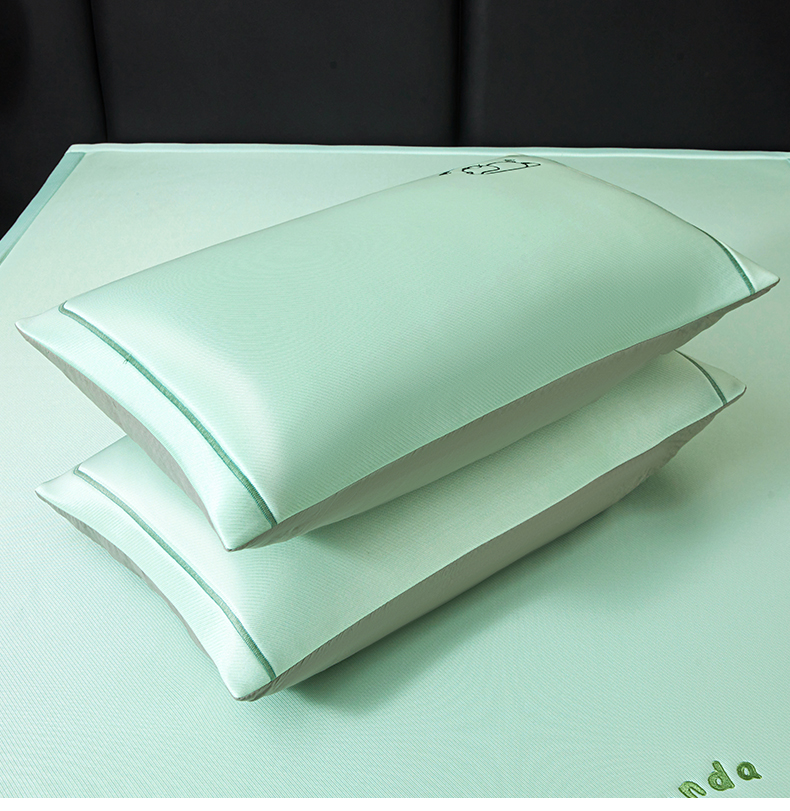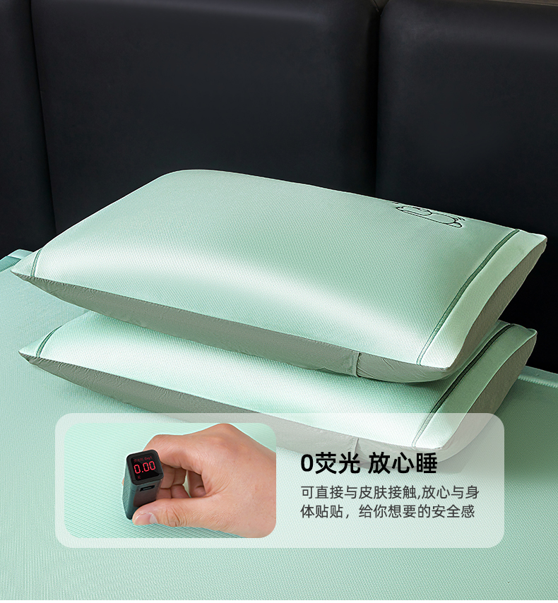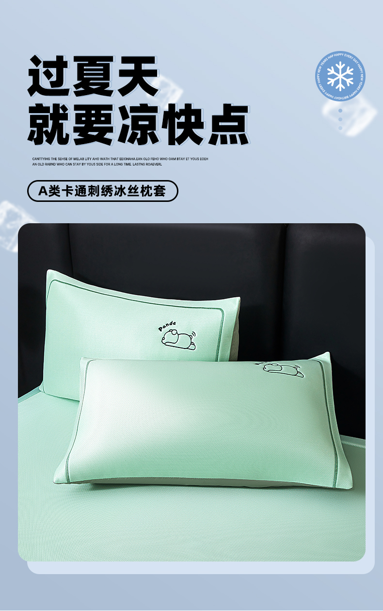 (总)全季家居 2023新款纯色凉感丝刺绣凉席,天蓝,灰色,粉色,绿色,草绿