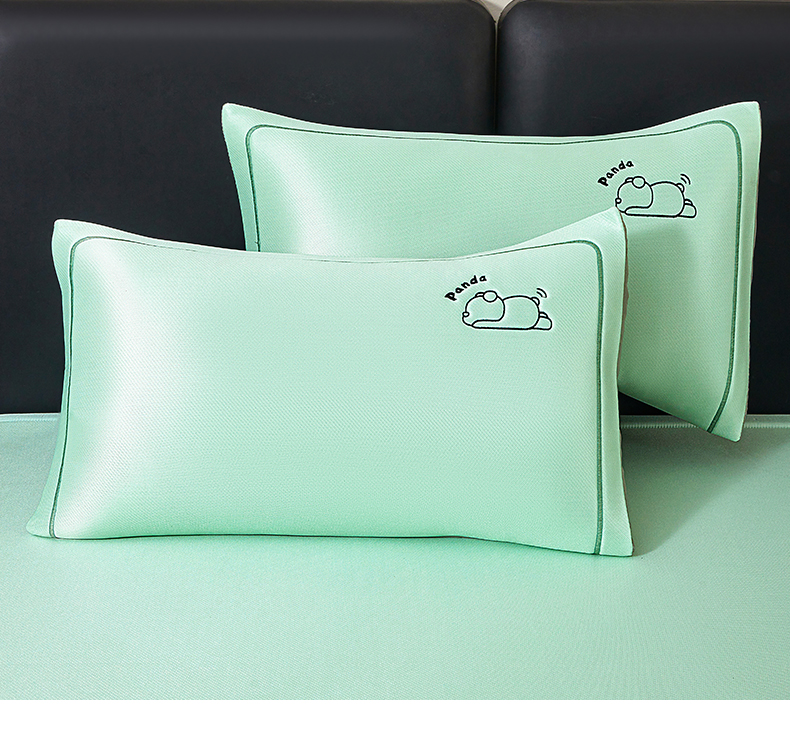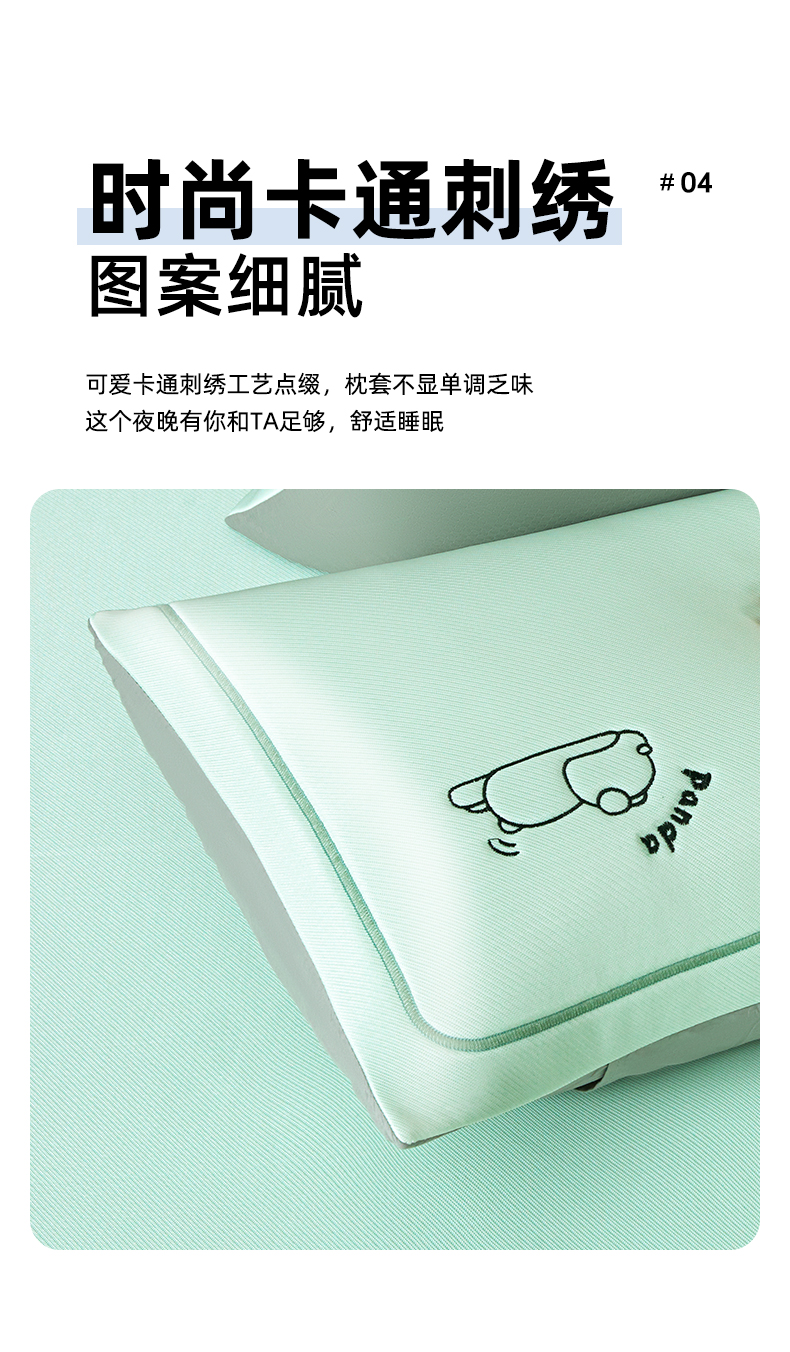 商品名称:全季家居 2025新款全季家居A类碳光萌趣熊猫刺绣枕套 水绿