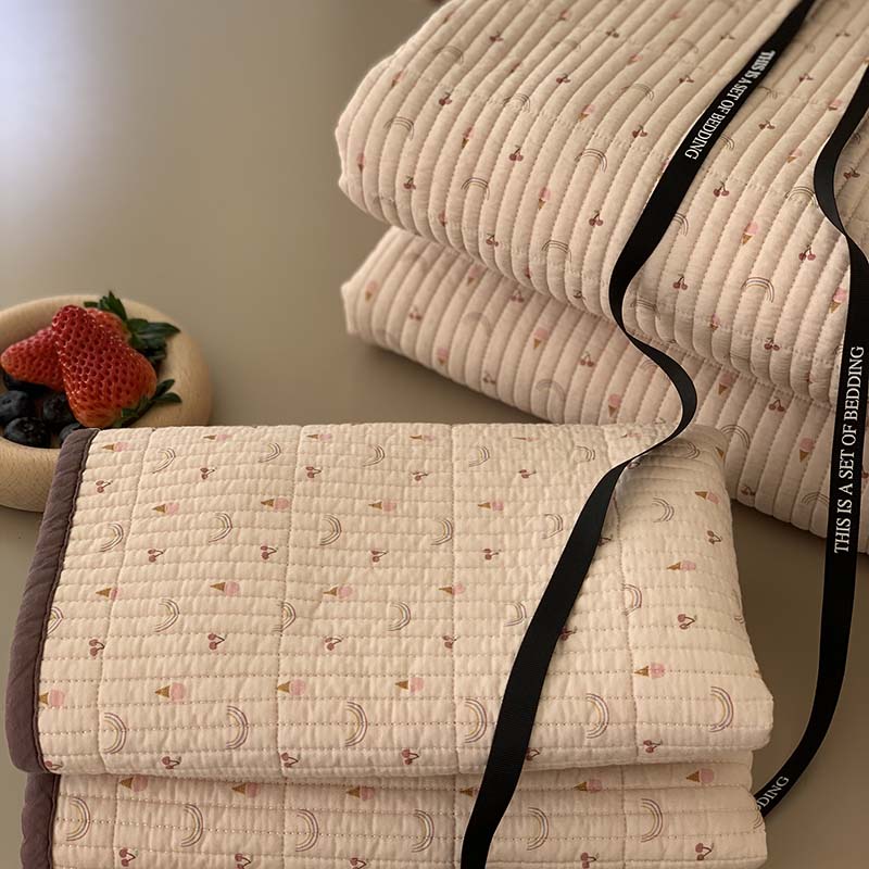 (总)汇庭 2025新款秋冬胖胖樱桃春秋被+樱桃菲菲床盖三件套,组合图下单仅供展示不可下单,粉色,绿色,米色