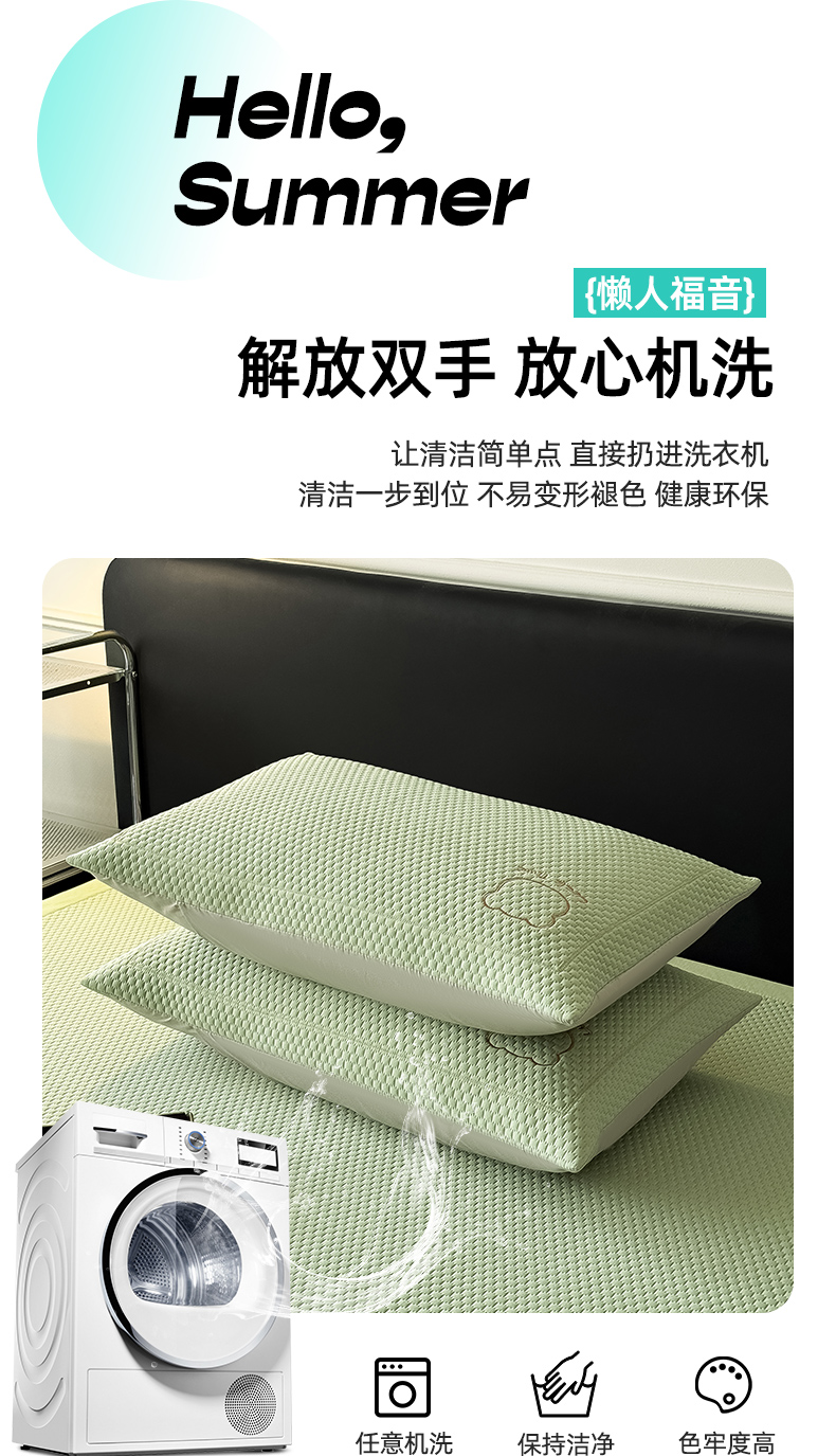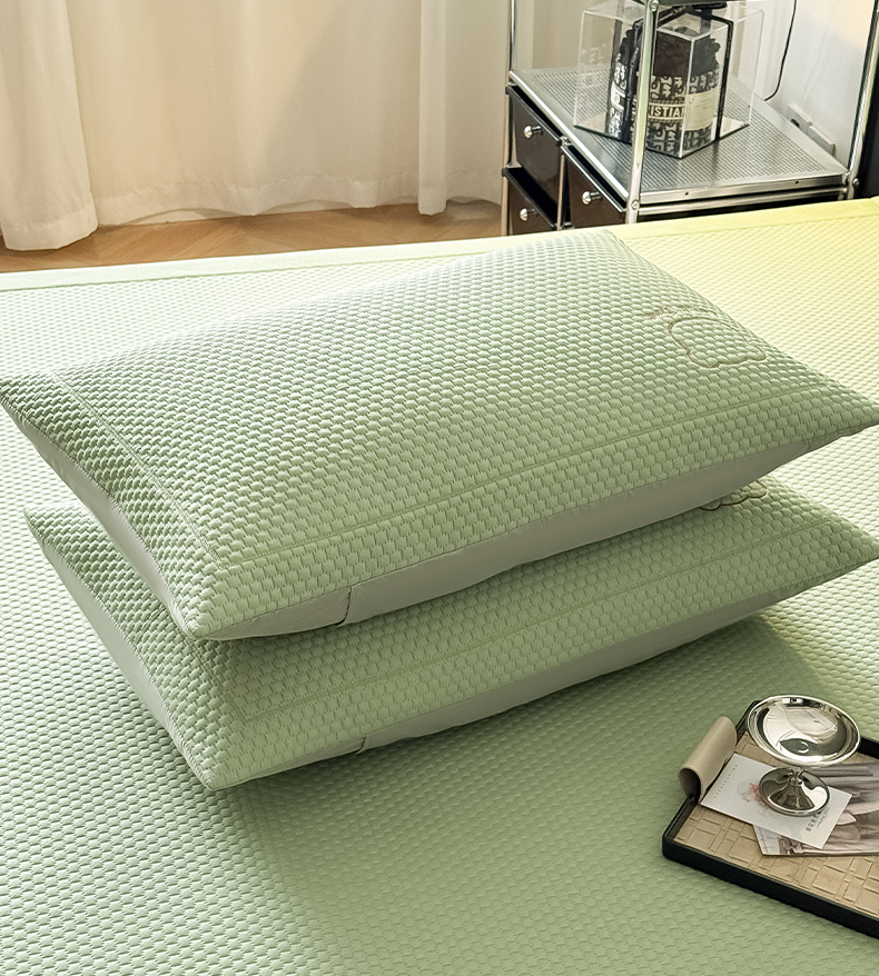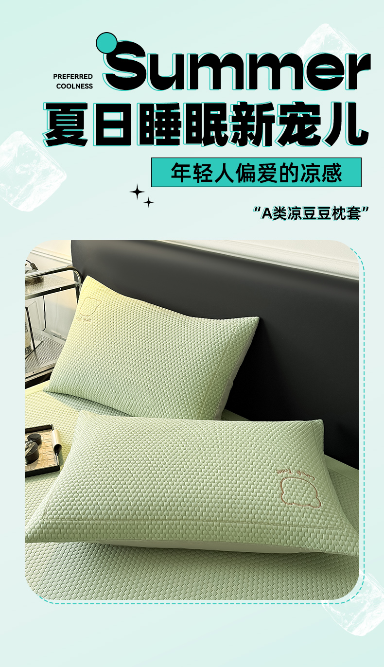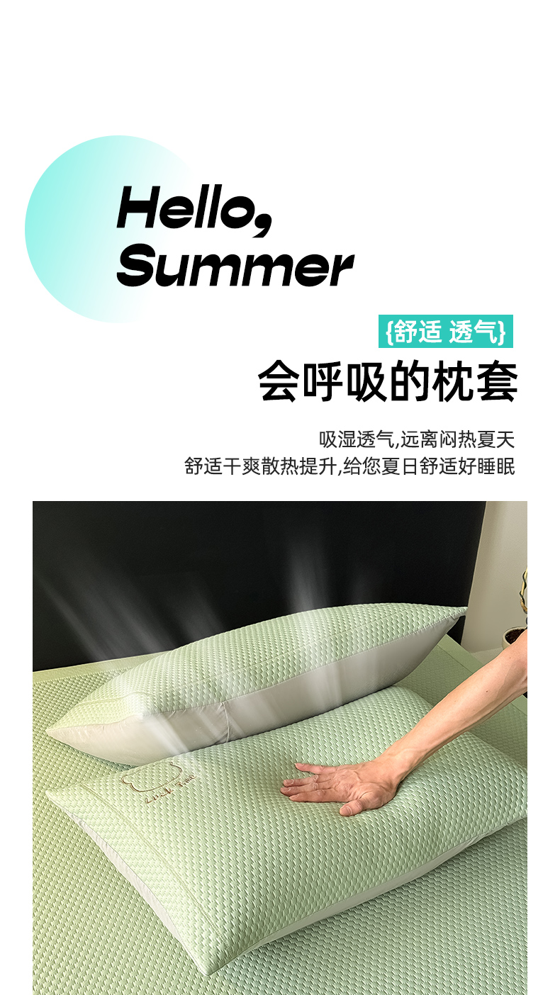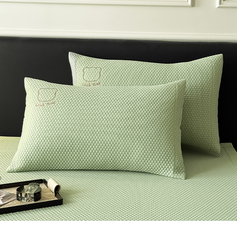 商品名称:全季家居 2025新款全季家居A类三明治凉豆豆刺绣枕套 水绿