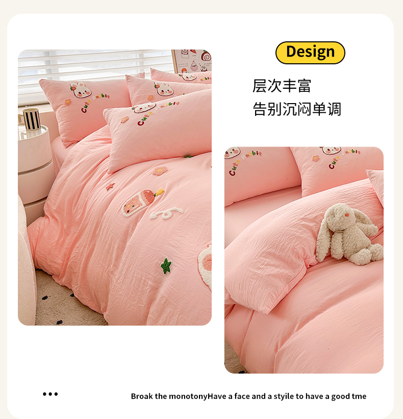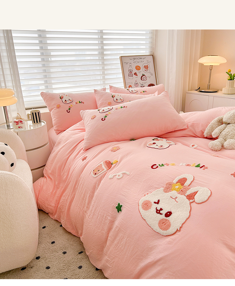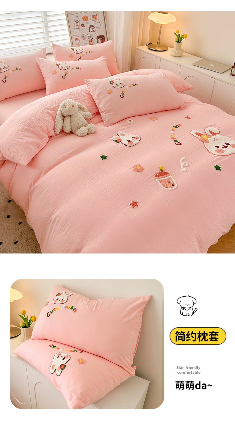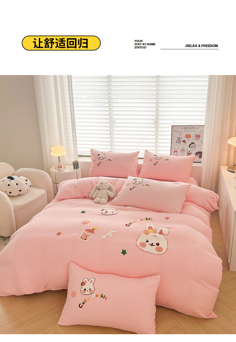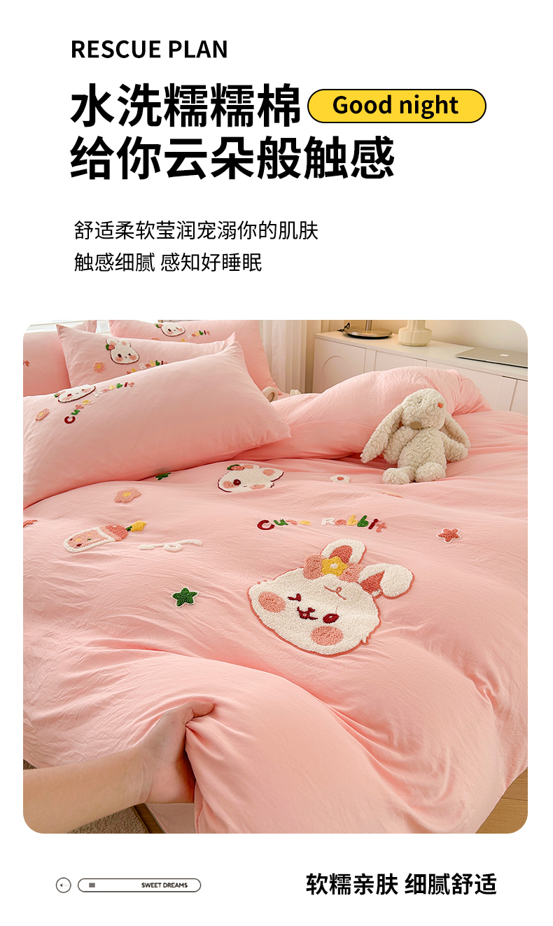包小包 2025新款糯糯绵毛巾绣可爱卡通爆款四件套 奶油兔-粉