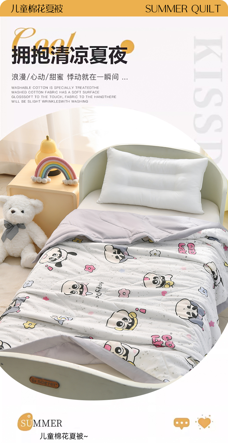 (总)鑫顺欣 2025新款儿童棉花夏被,爱心kitty,假日伙伴,腊肠狗,奶蓝小喵,趣味小新,摇滚库洛米