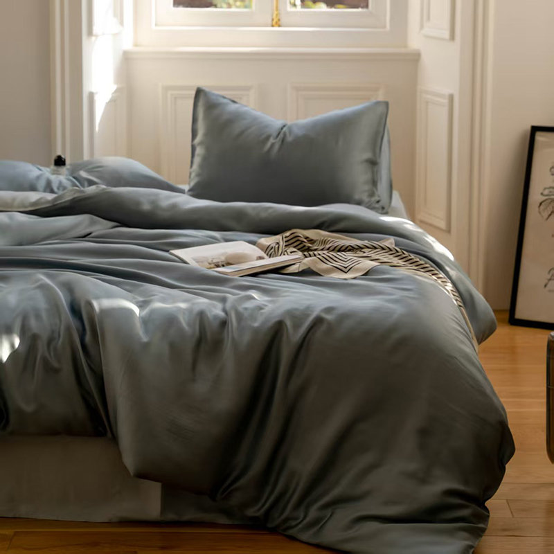 当前位置: 91家纺网 > 商品网购 > 床品套件 > 四件套 > 莱赛尔四件套 > 未来家居 2025新款60S兰精天丝纯色四件套 灰蓝色-冰川灰