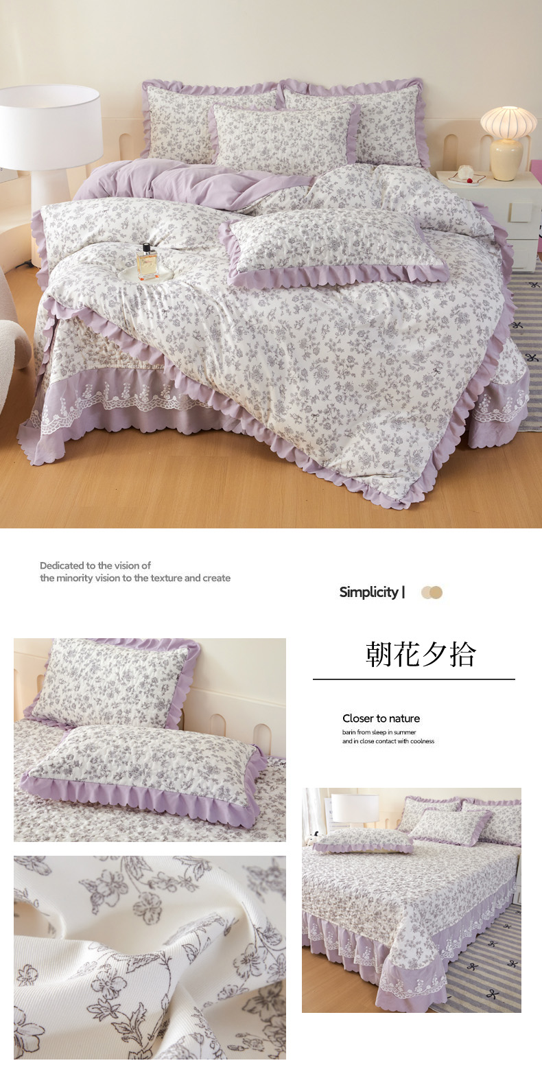 艺慕家纺 2025新款时尚印花针织棉床盖套件 朝花夕拾