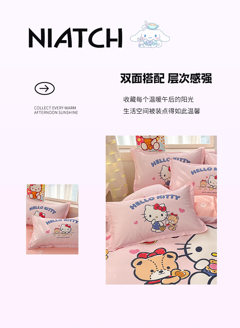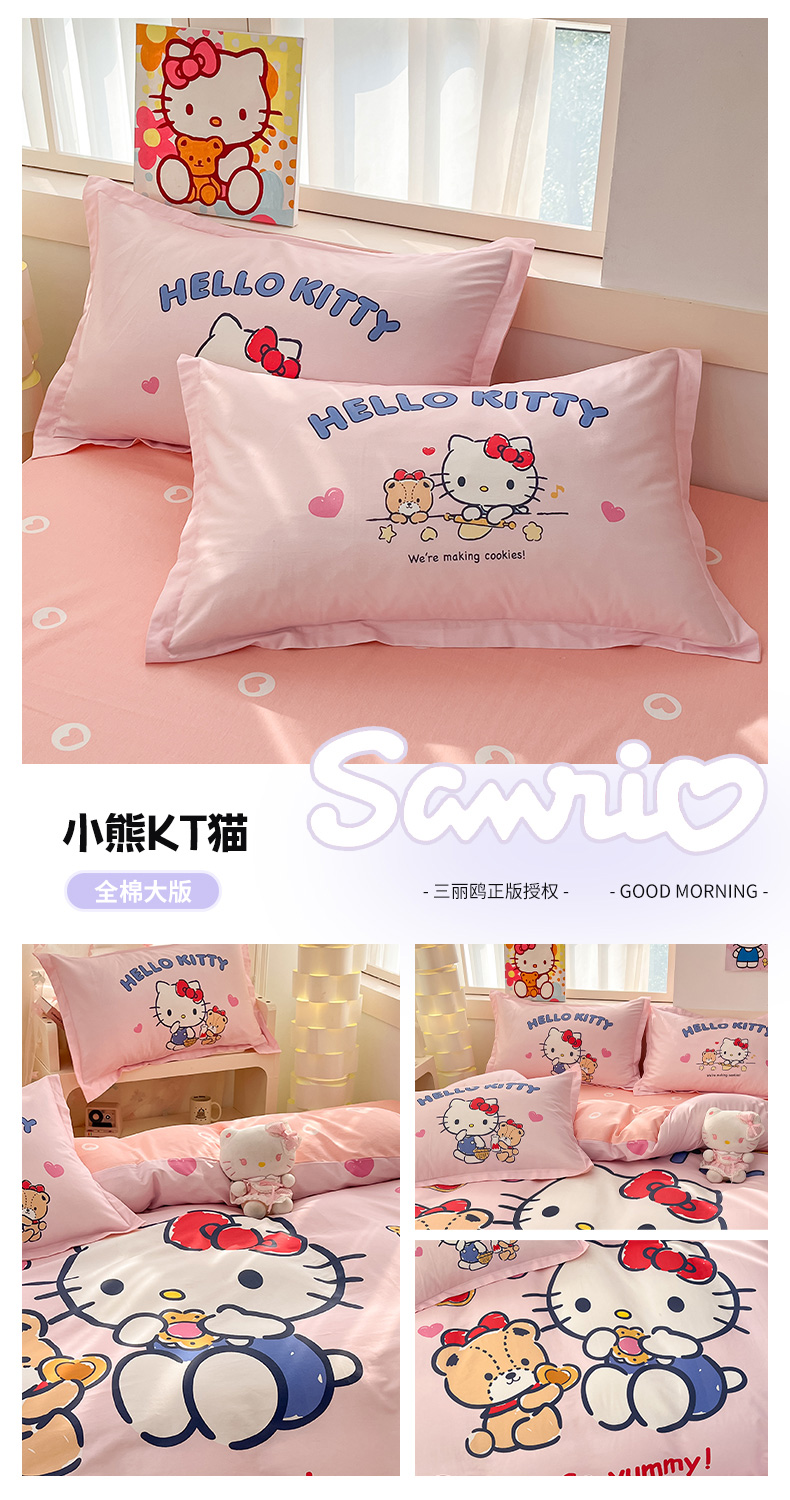 商品名称:博雅 2025新款三丽鸥全棉大版单枕套 小熊KT猫