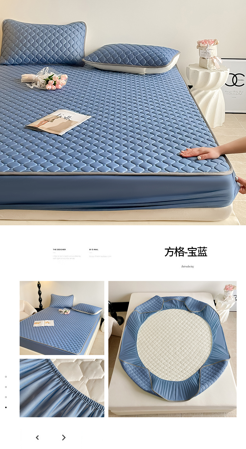 商品名称:2025新款加厚0.5纯色凉感丝单床笠乳胶凉席 方格-宝蓝