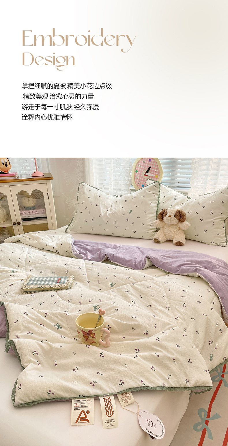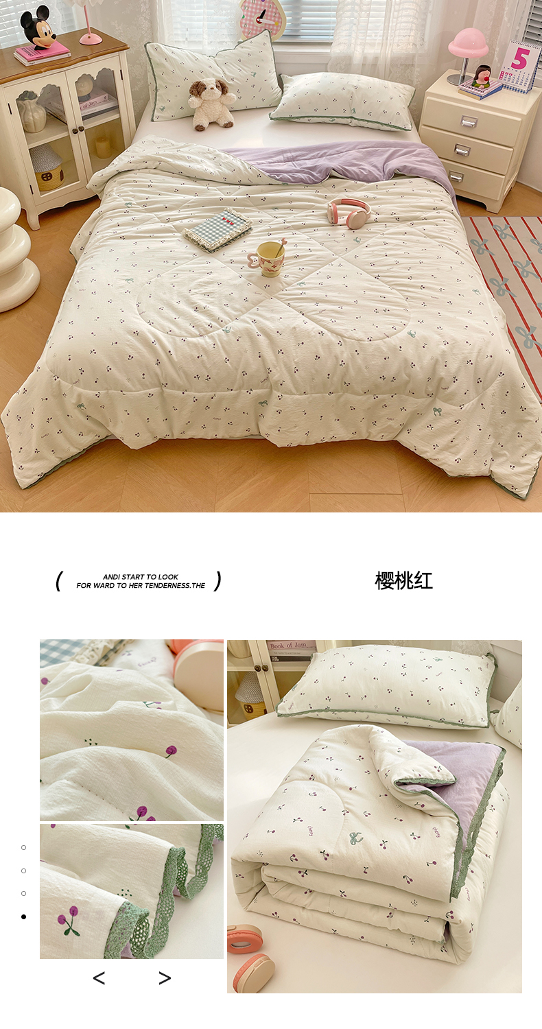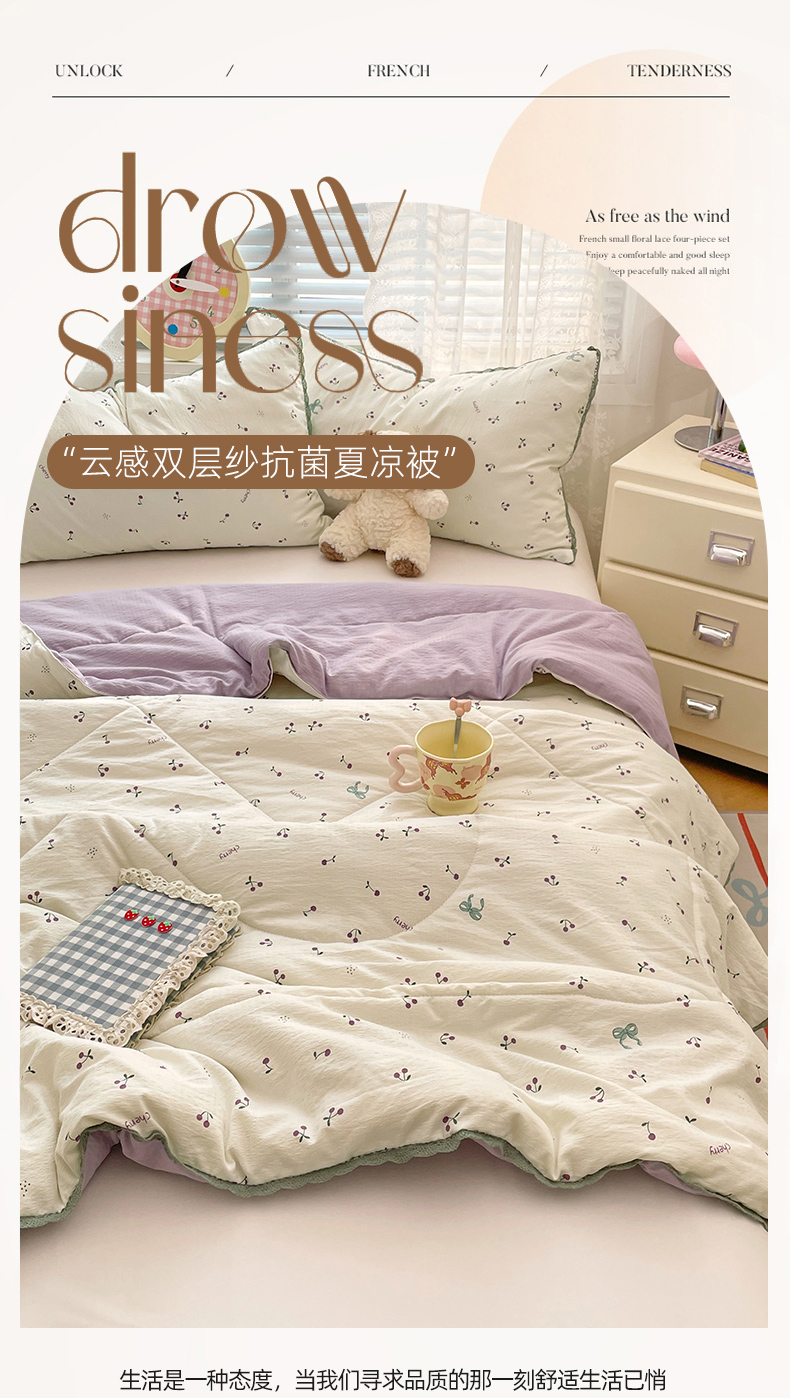 商品名称:优承佳生活馆 2025新款云感双层纱浪漫小花边抗菌夏被子被芯 樱桃红