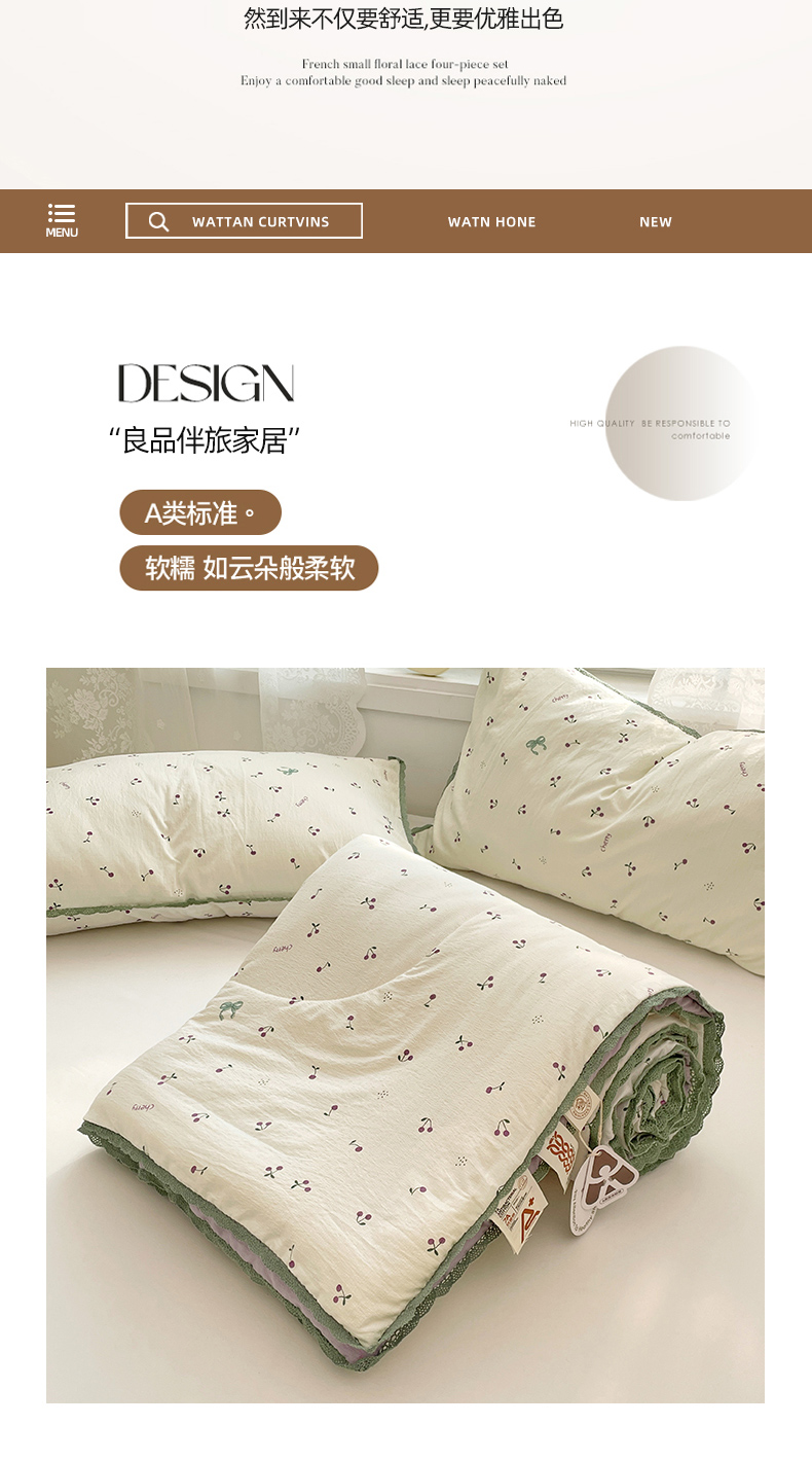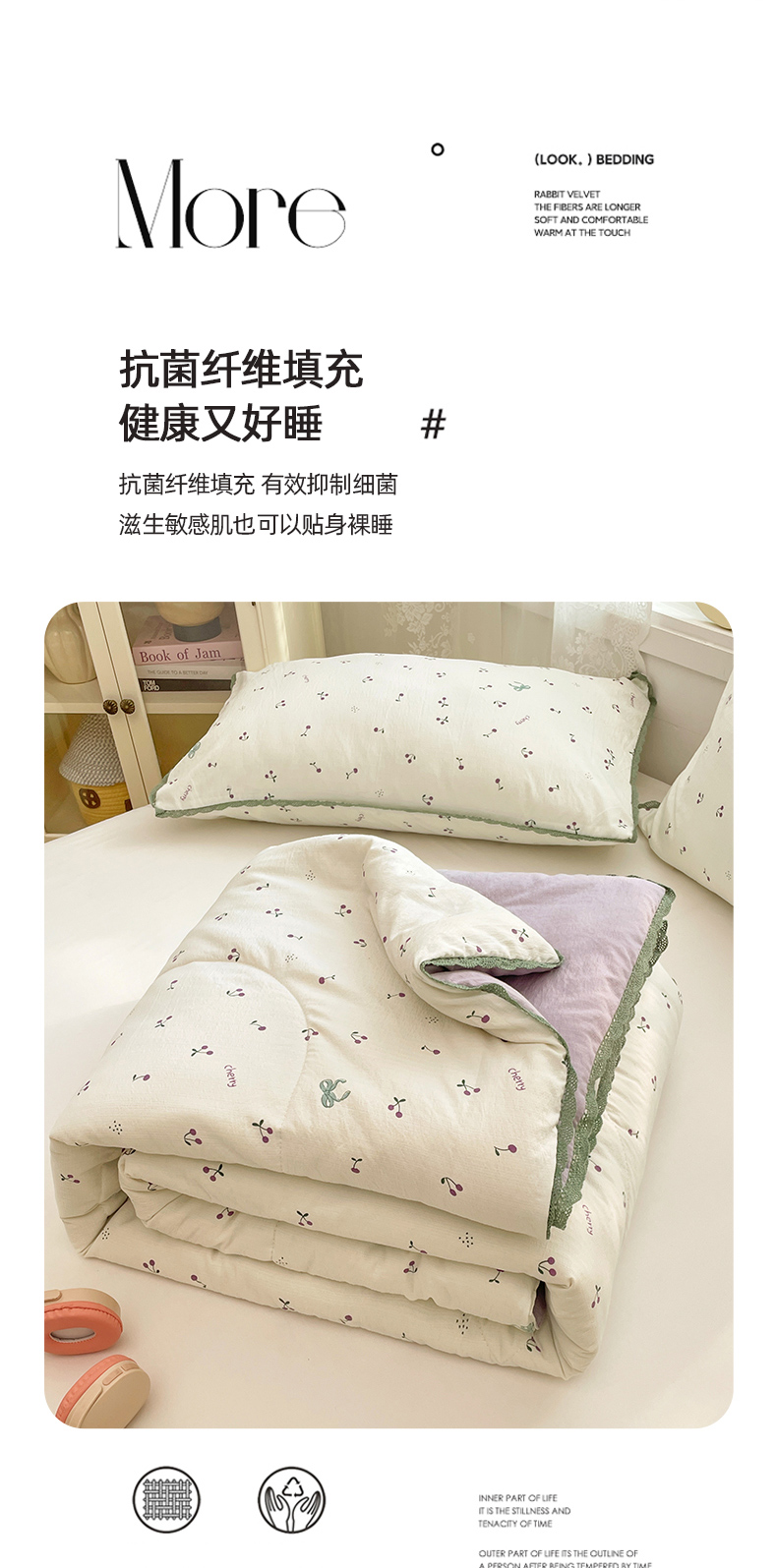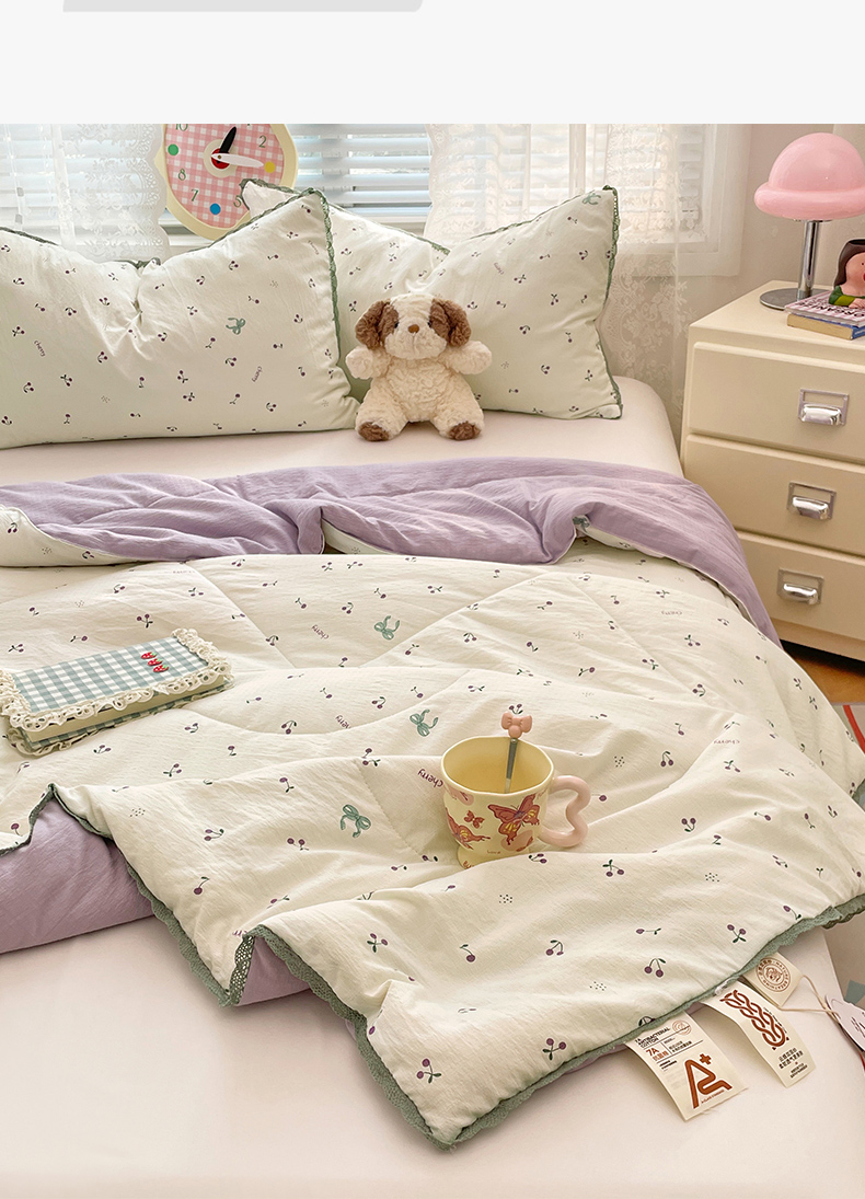 商品名称:优承佳生活馆 2025新款云感双层纱浪漫小花边抗菌夏被子被芯 樱桃红