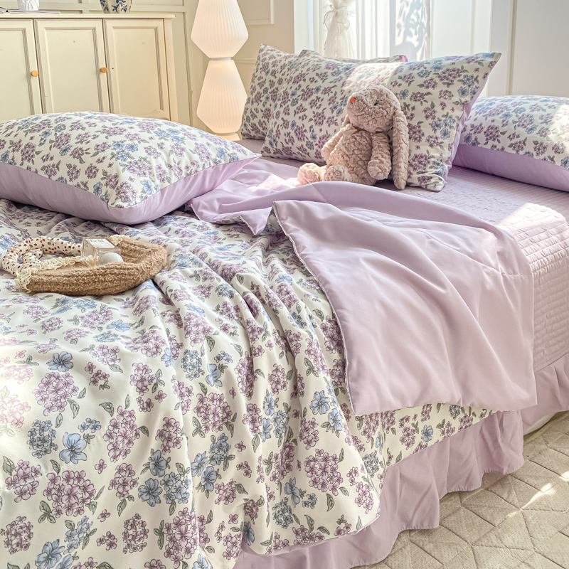 商品名称:一比一家纺 2025新款针织双层纱夏被床盖四件套单夏被单床盖单品 梦幻紫藤