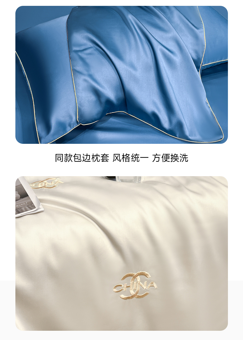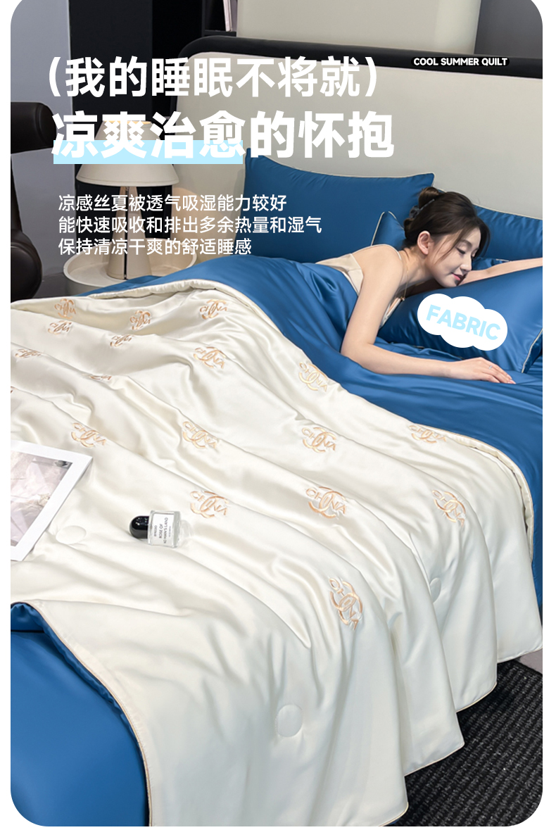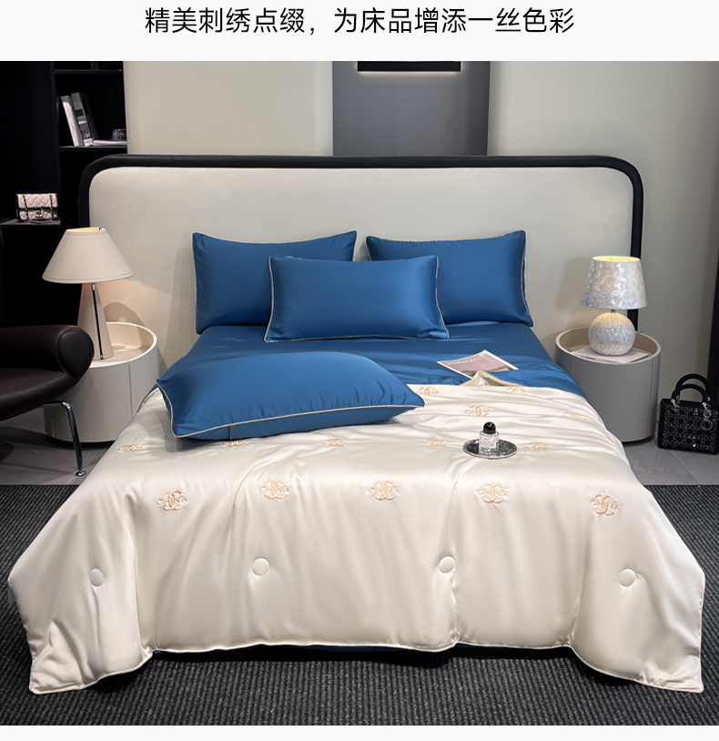 当前位置: 91家纺网 > 商品网购 > 被子 > 普通夏被 > 鑫顺欣 2025新款水洗冰丝刺绣麻绳系列凉感夏被四件套夏凉被 字母香奈儿-奶白蓝