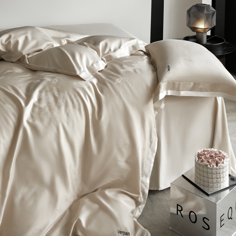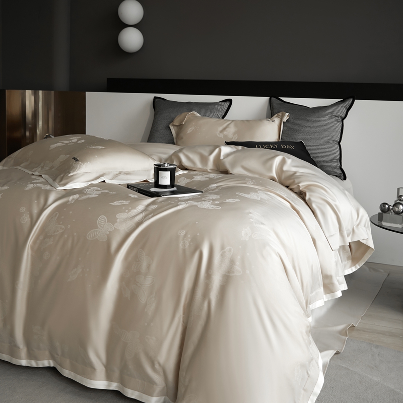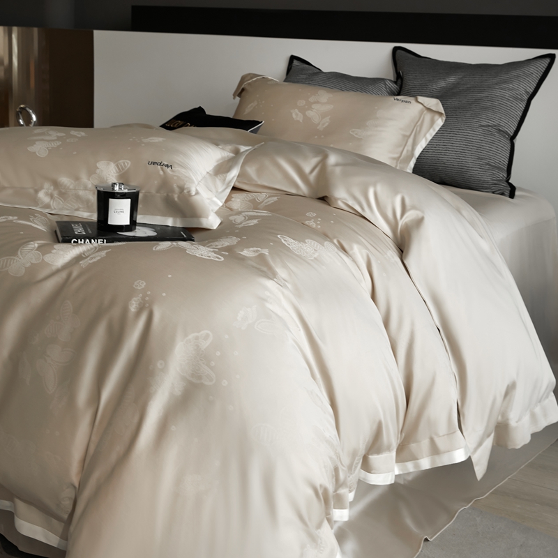 涞澳家纺 2025新款天丝棉提花四件套 幻蝶-香槟