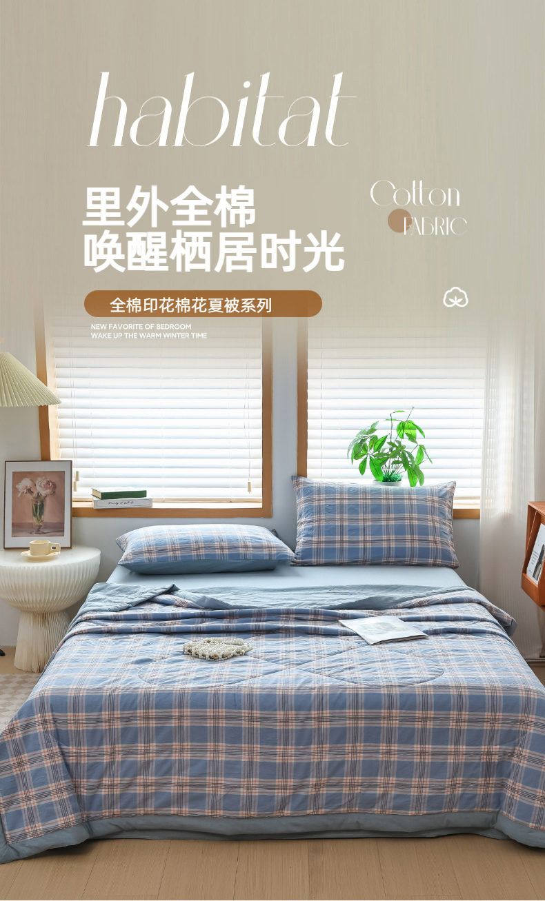 (总)圣尔雅 2025新款里外全棉色织夏被新疆棉花被纯棉被子空调被夏凉被,黛蓝,粉玉,卡其,墨绿,奶白,星灰