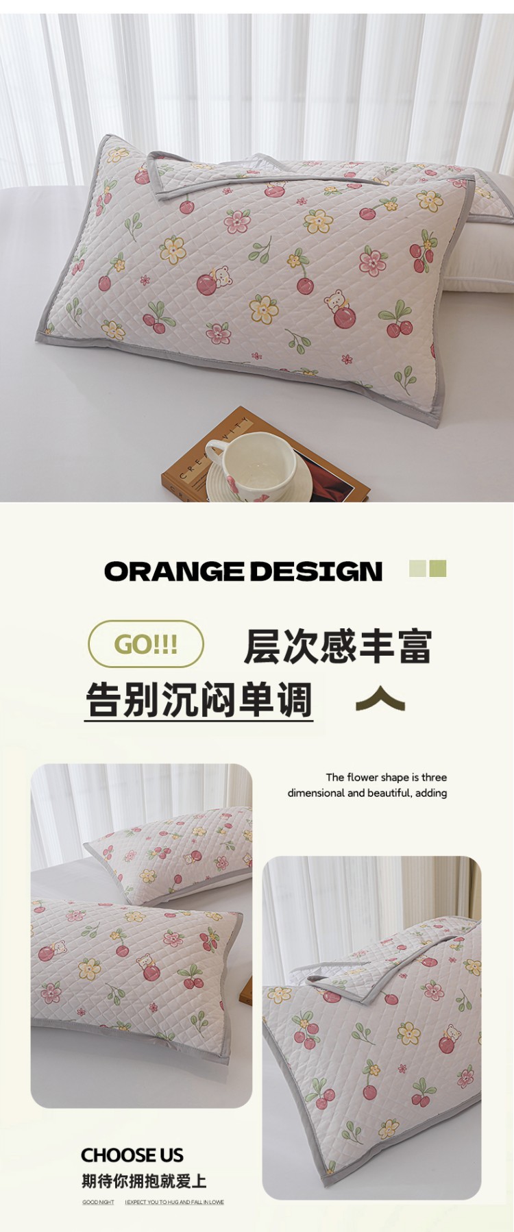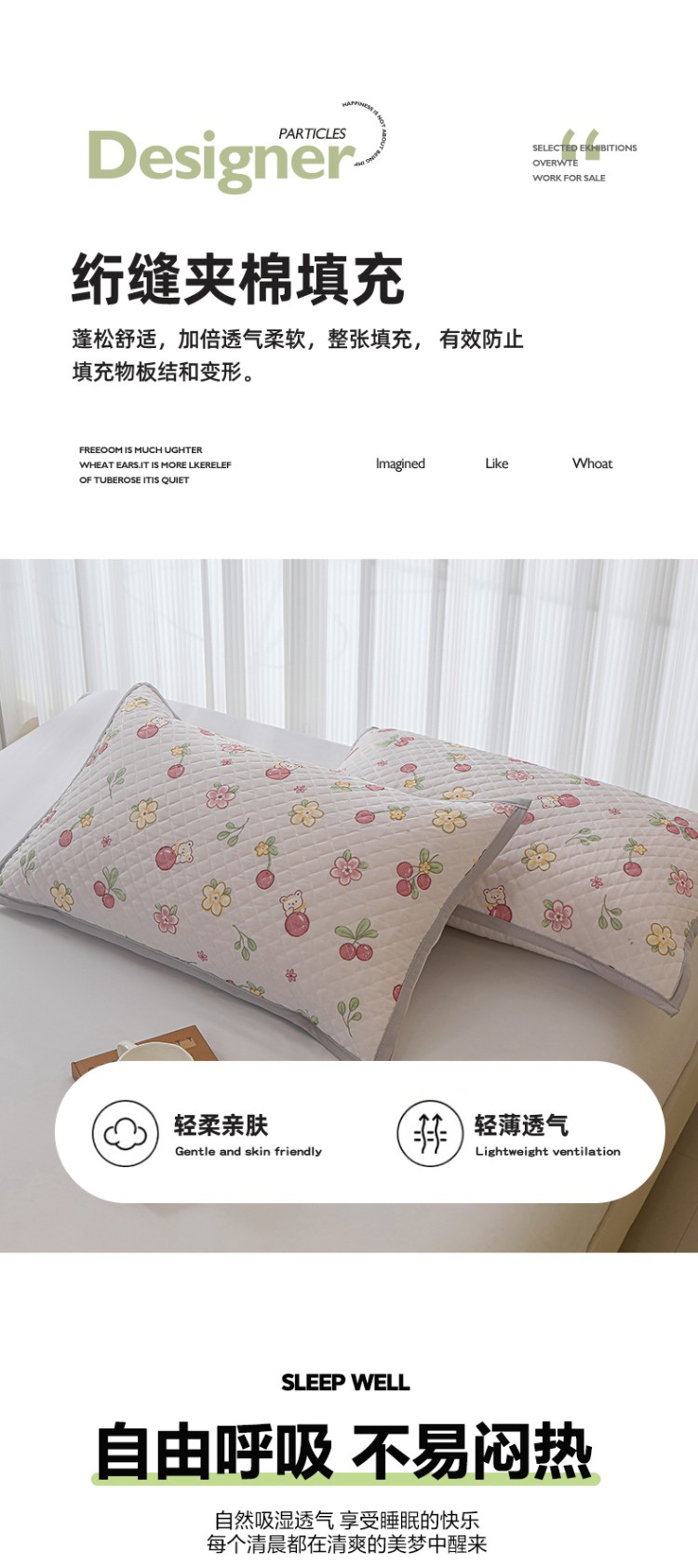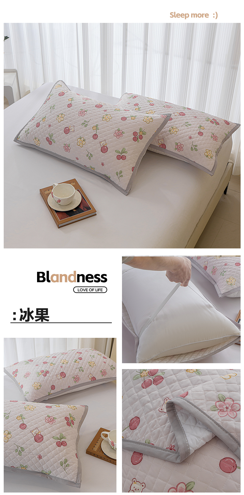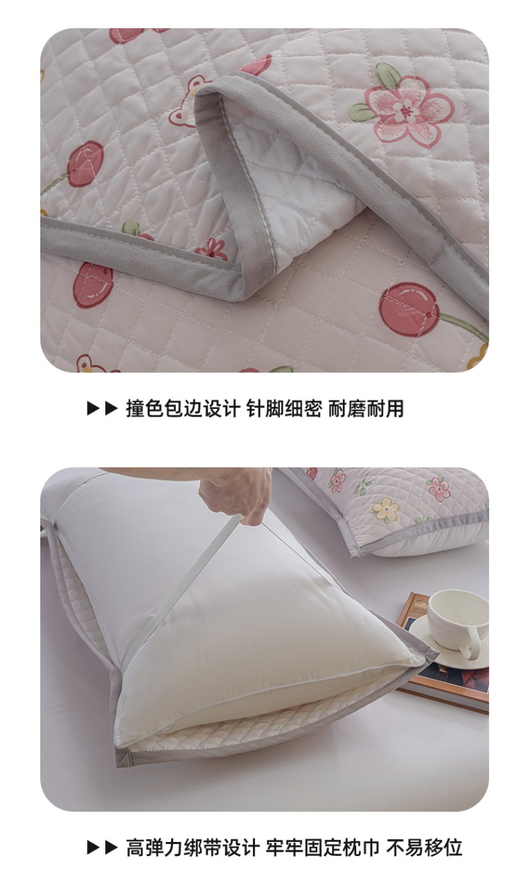 商品名称:美宜家 2025新款夏季凉感丝绗缝绑带枕巾隔脏吸汗冰丝枕巾 冰果 一对