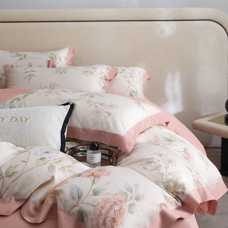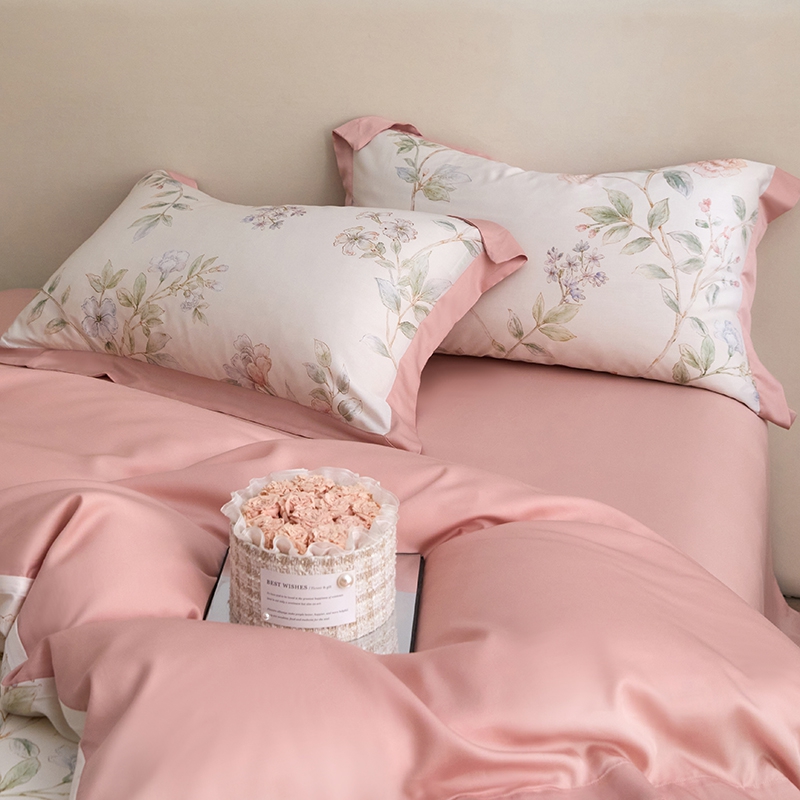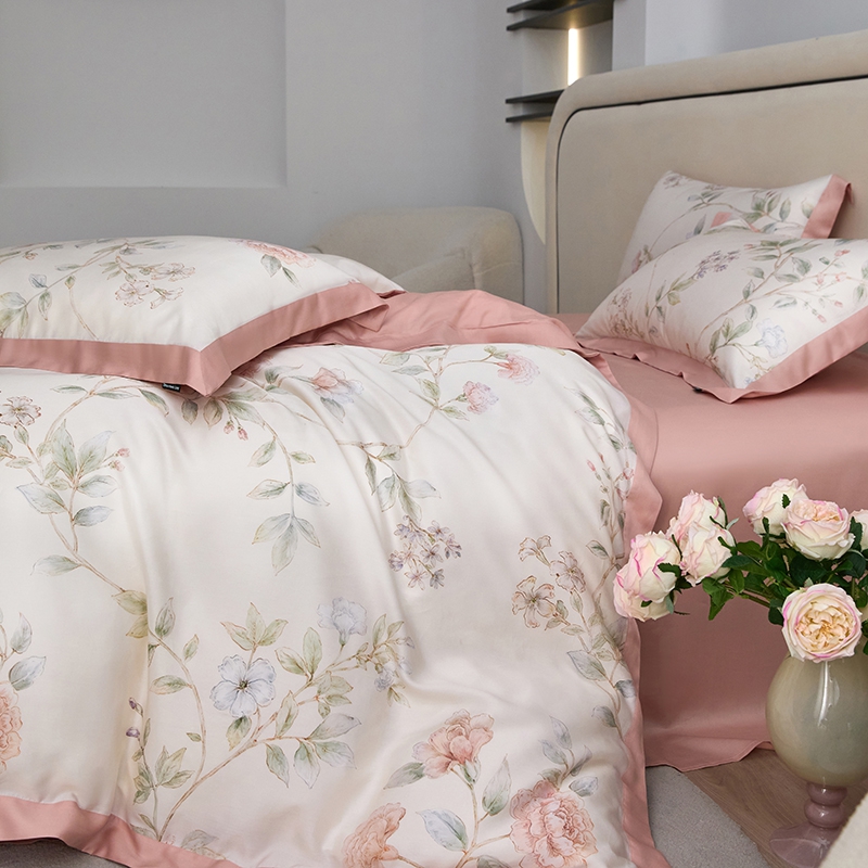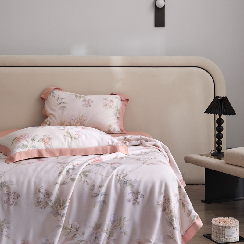 商品名称:薏思家纺 2025新款50支莱赛尔天丝数码印花夏被四件套(礼盒包装) 梦屿香-粉