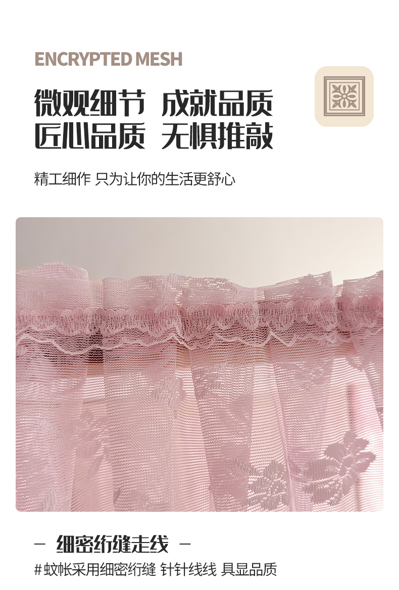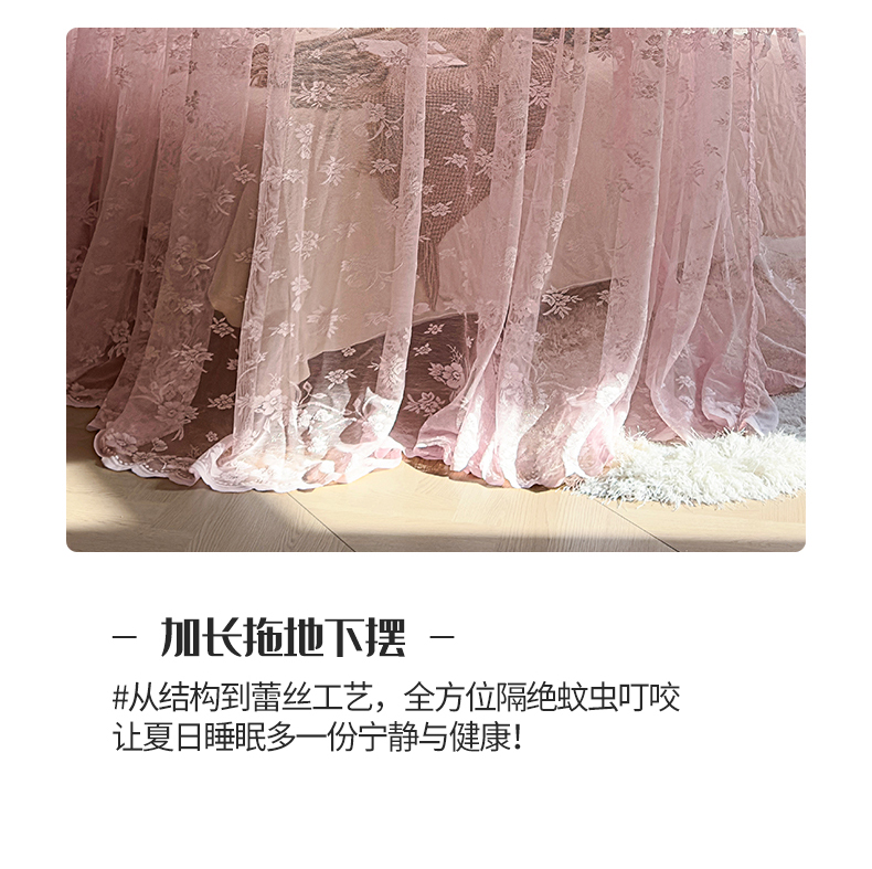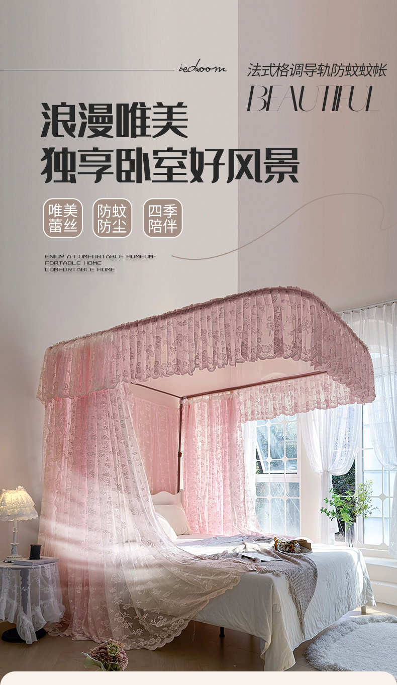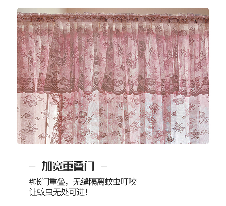 商品名称:夏彩 2025新款双轨铁接口带皮条铝合金蕾丝轨道蚊帐-88537 88537-粉色