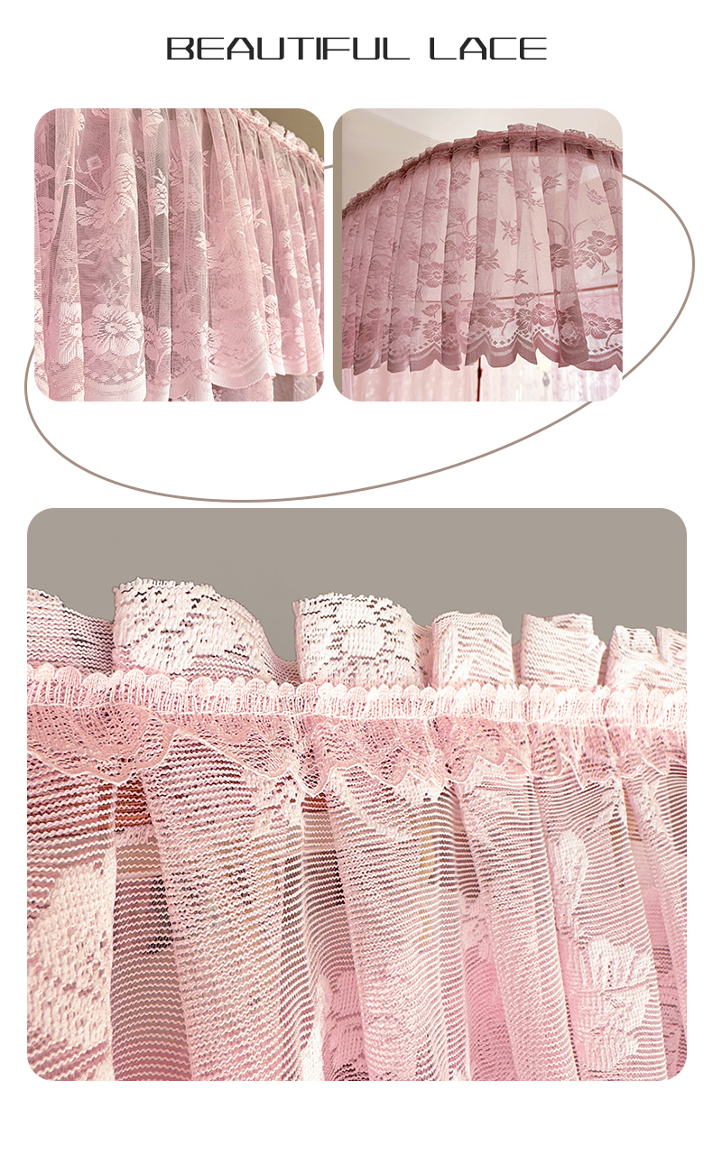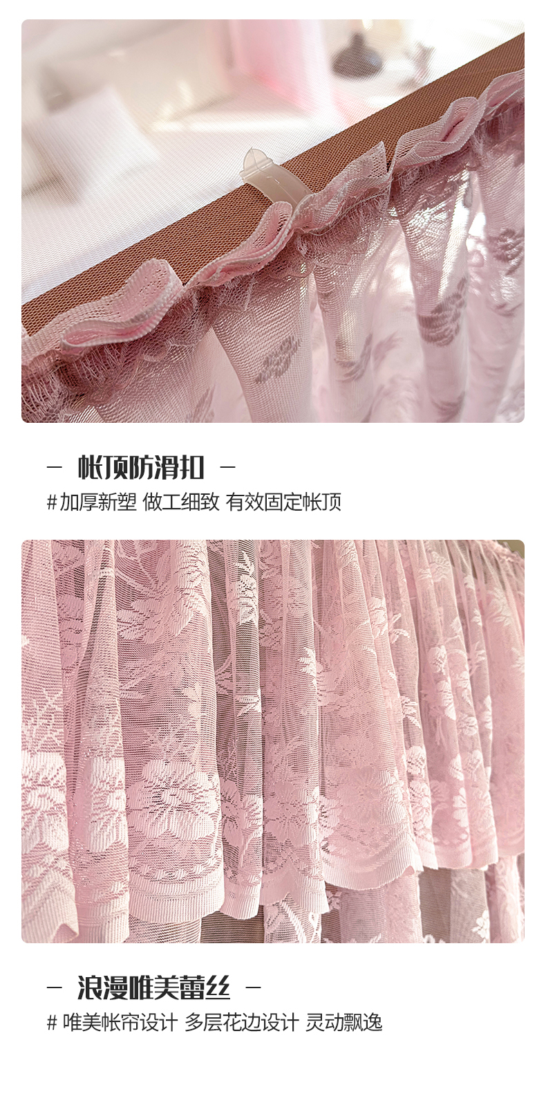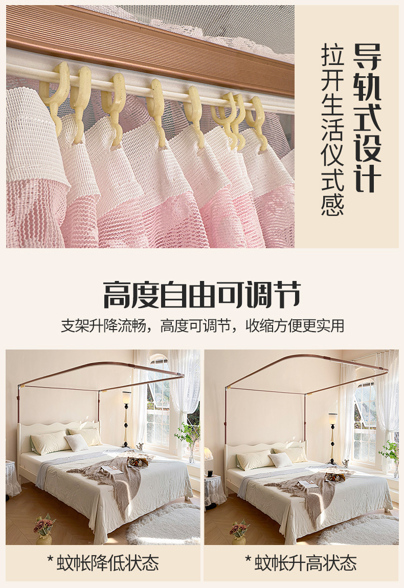 商品名称:夏彩 2025新款双轨铁接口带皮条铝合金蕾丝轨道蚊帐-88537 88537-粉色