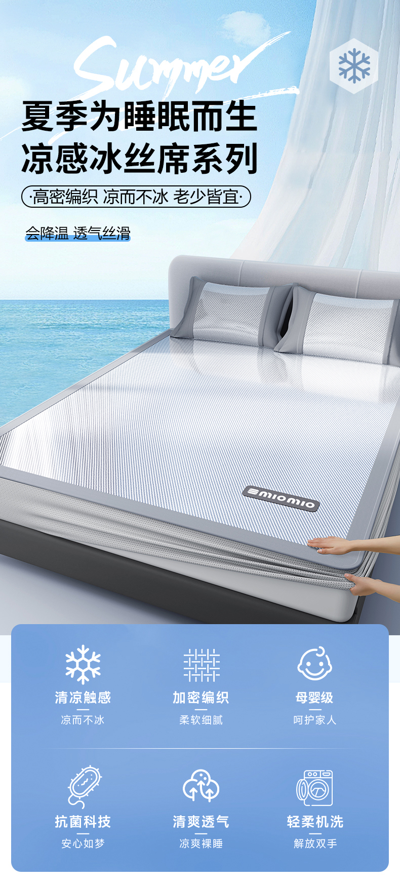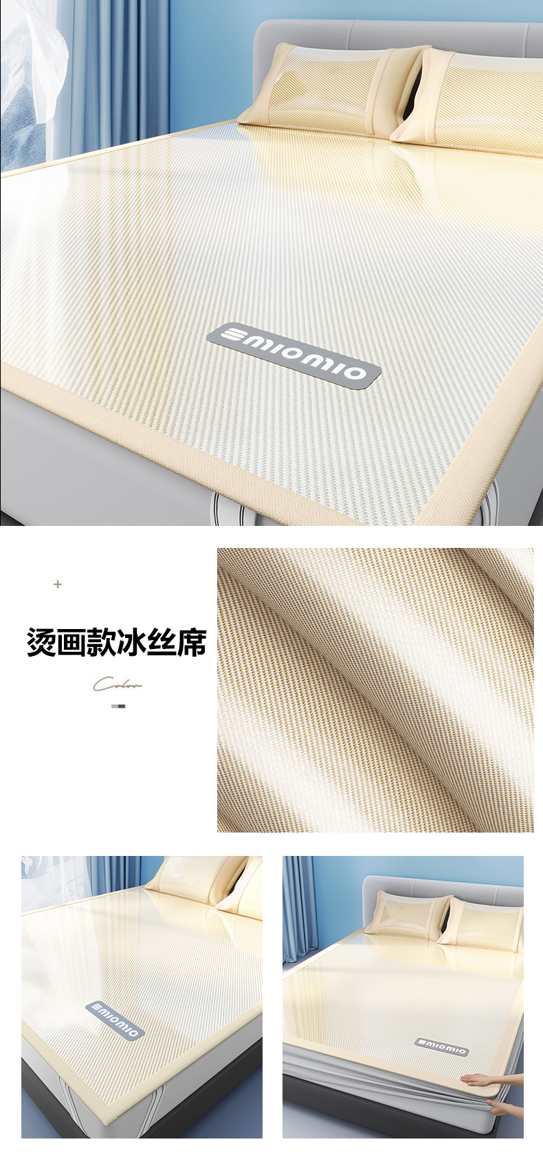 当前位置: 91家纺网 > 商品网购 > 床上用品 > 凉席 > 冰丝席 > 悠米悠家 2025春夏新款斜纹烫画凉感冰丝席凉席席子 床席款-蓝
