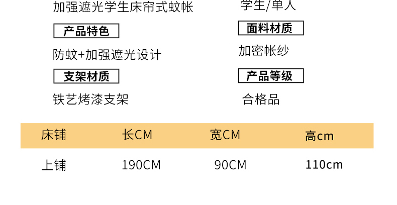 0.9m上铺不带靠墙帘-烤漆支架 | ¥90.00 |