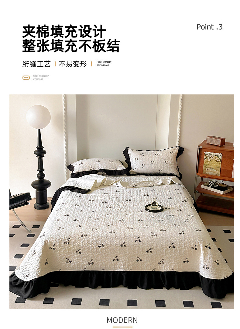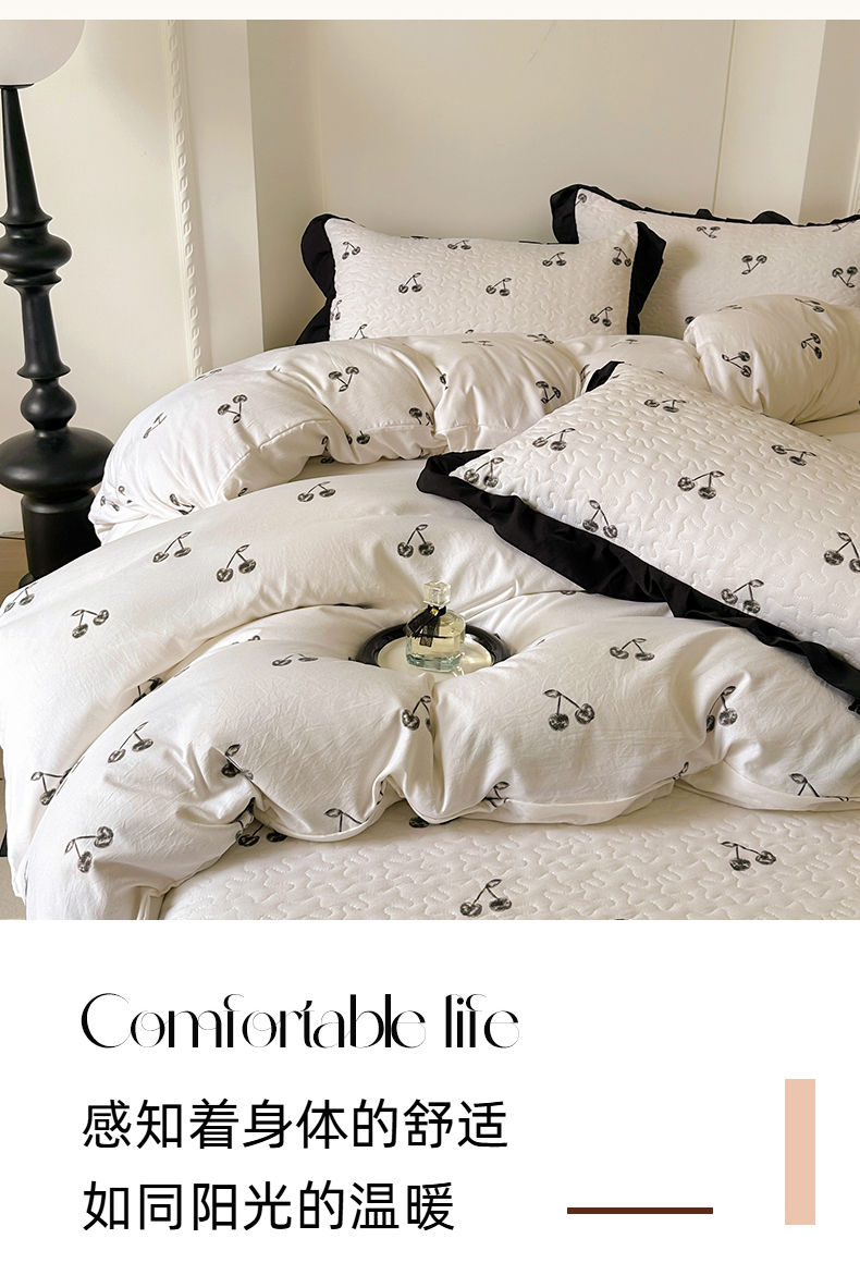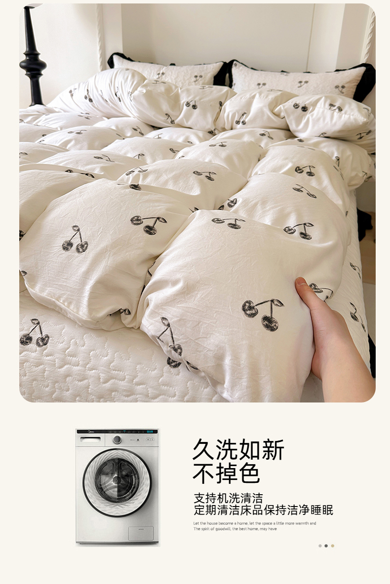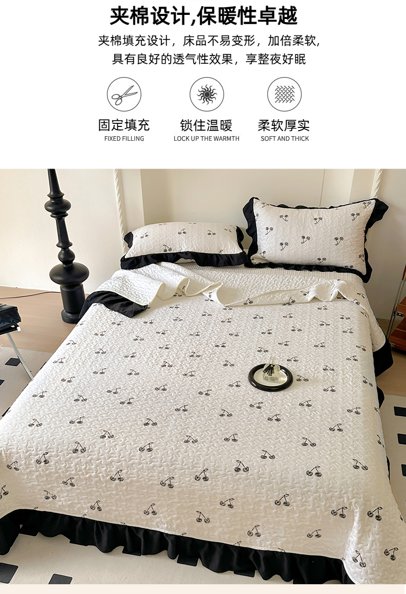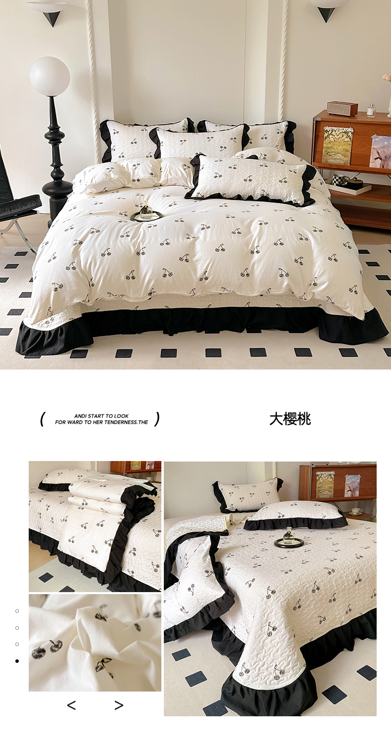 当前位置: 91家纺网 > 商品网购 > 床品套件 > 四件套 > 化纤普通四件套 > 韩秀家纺 2025新款 四季跑量款花边夹棉加厚水洗棉泡泡棉糯感印花韩版床盖四件套 大樱桃