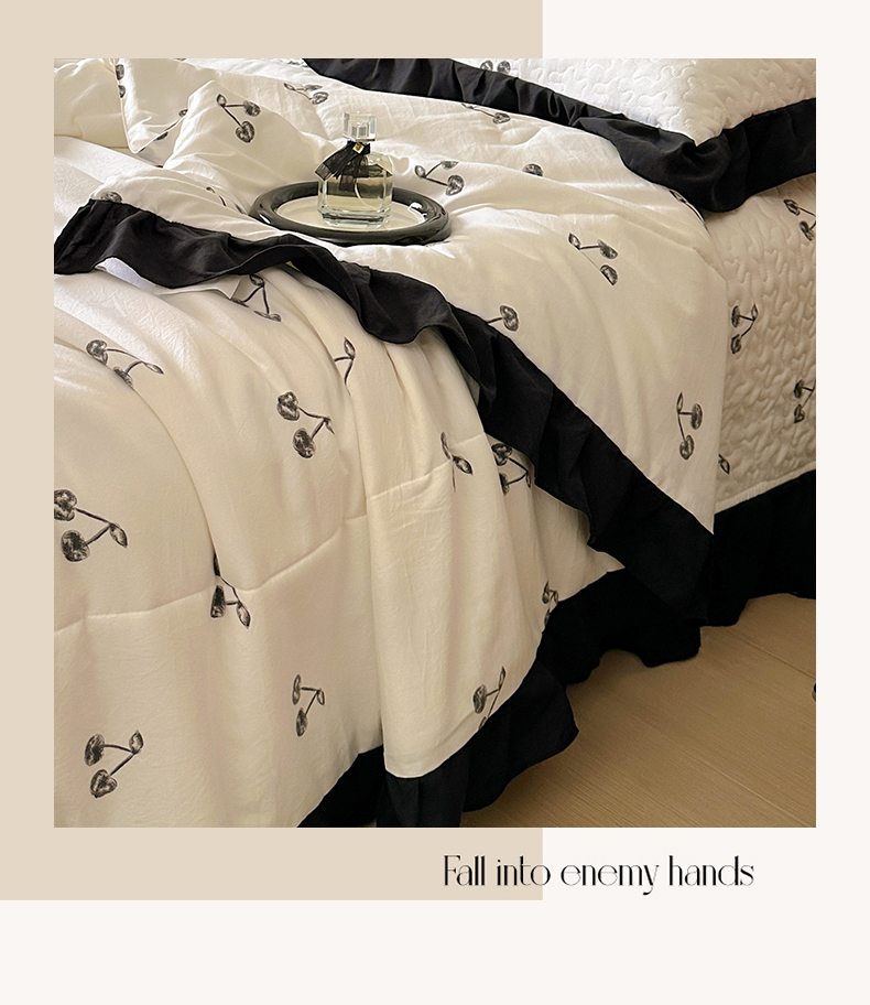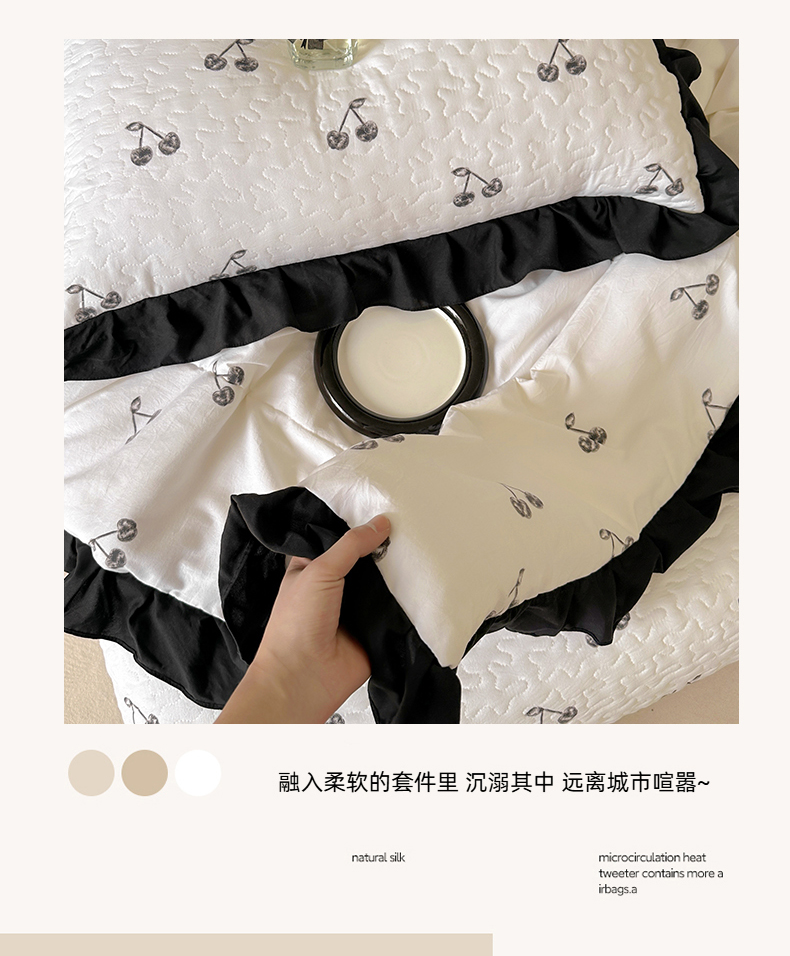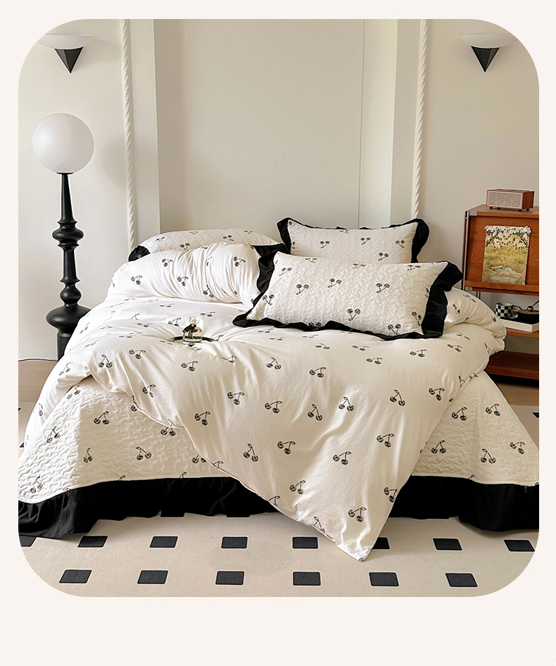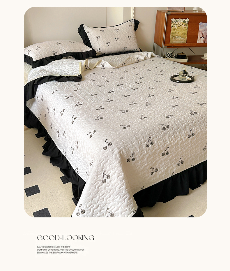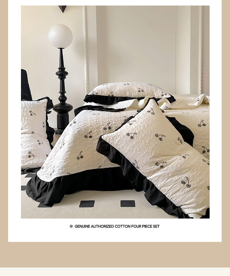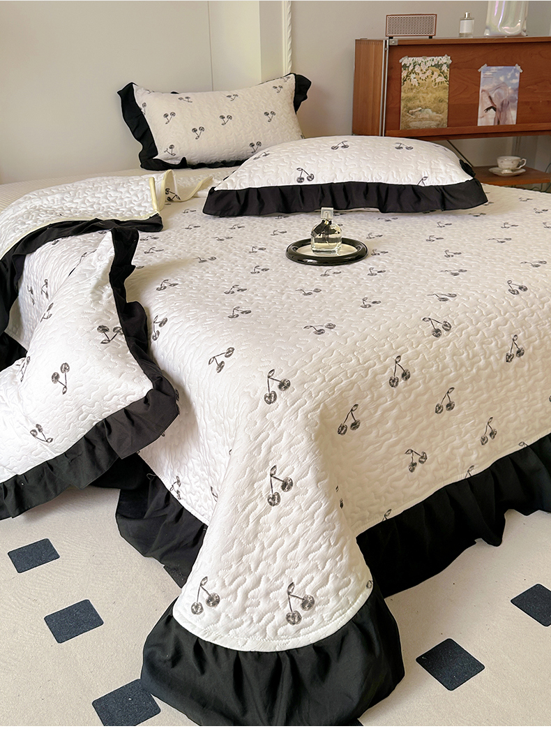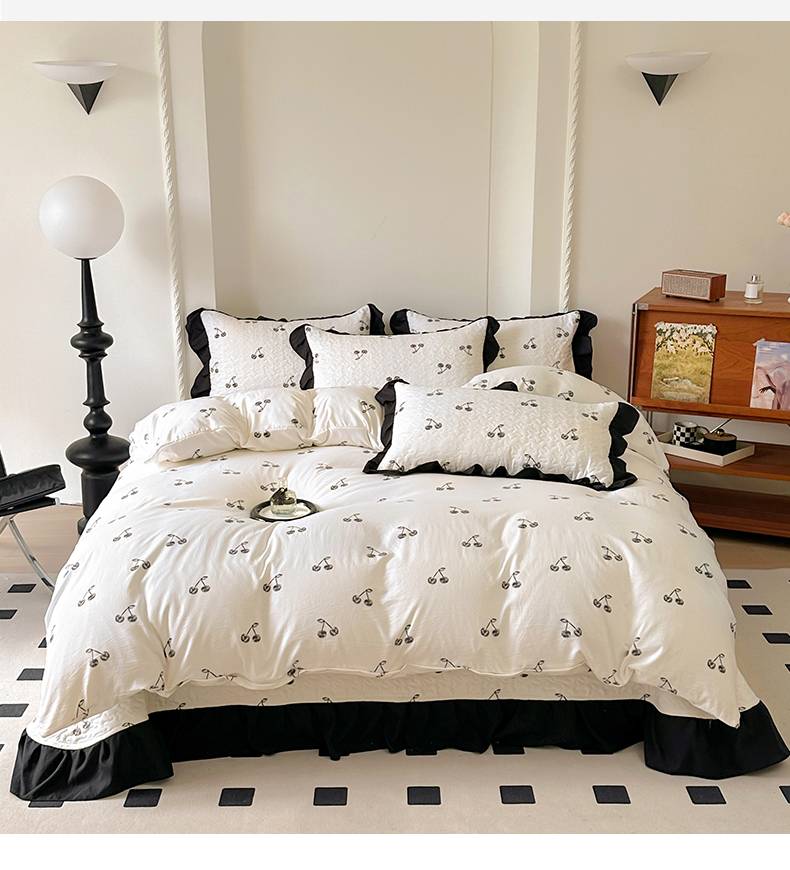 当前位置: 91家纺网 > 商品网购 > 床品套件 > 四件套 > 化纤普通四件套 > 韩秀家纺 2025新款 四季跑量款花边夹棉加厚水洗棉泡泡棉糯感印花韩版床盖四件套 大樱桃