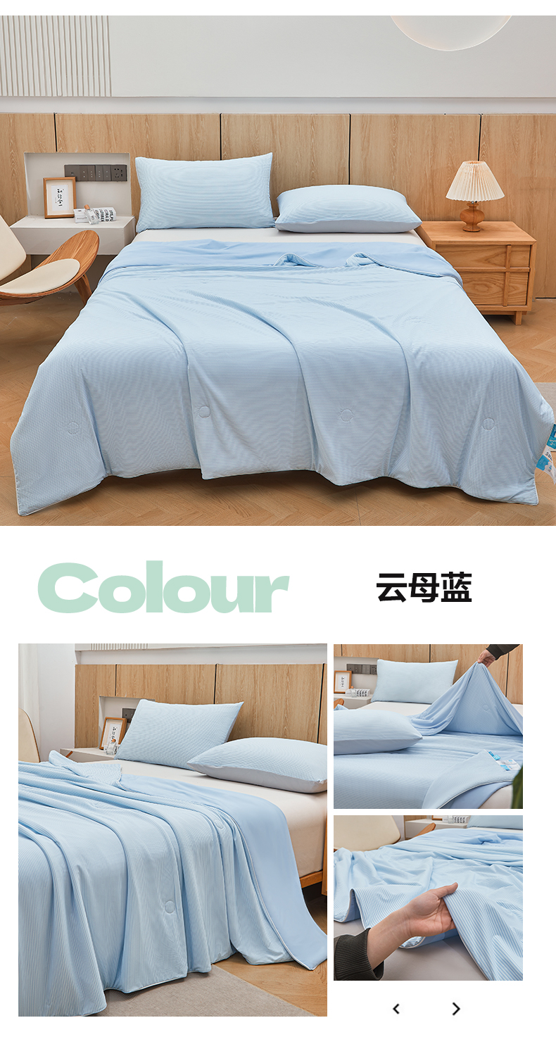 商品名称:金喜 2025新款A类高克重冰丝夏被云母凉感夏凉被子(10%氨纶) 云母蓝