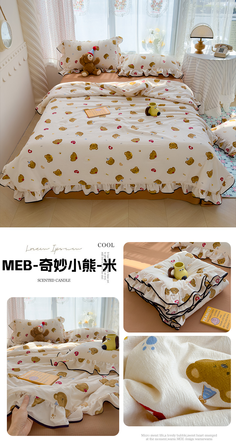 当前位置: 91家纺网 > 商品网购 > 床品套件 > 四件套 > 其它四件套 > 欧尚2025新款BYS-云感纱MEB夏被四件套系列 MEB-奇妙小熊-米