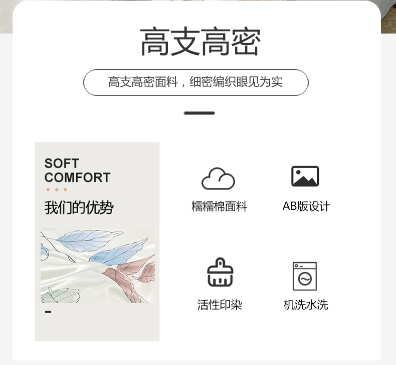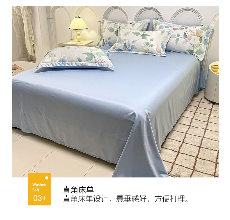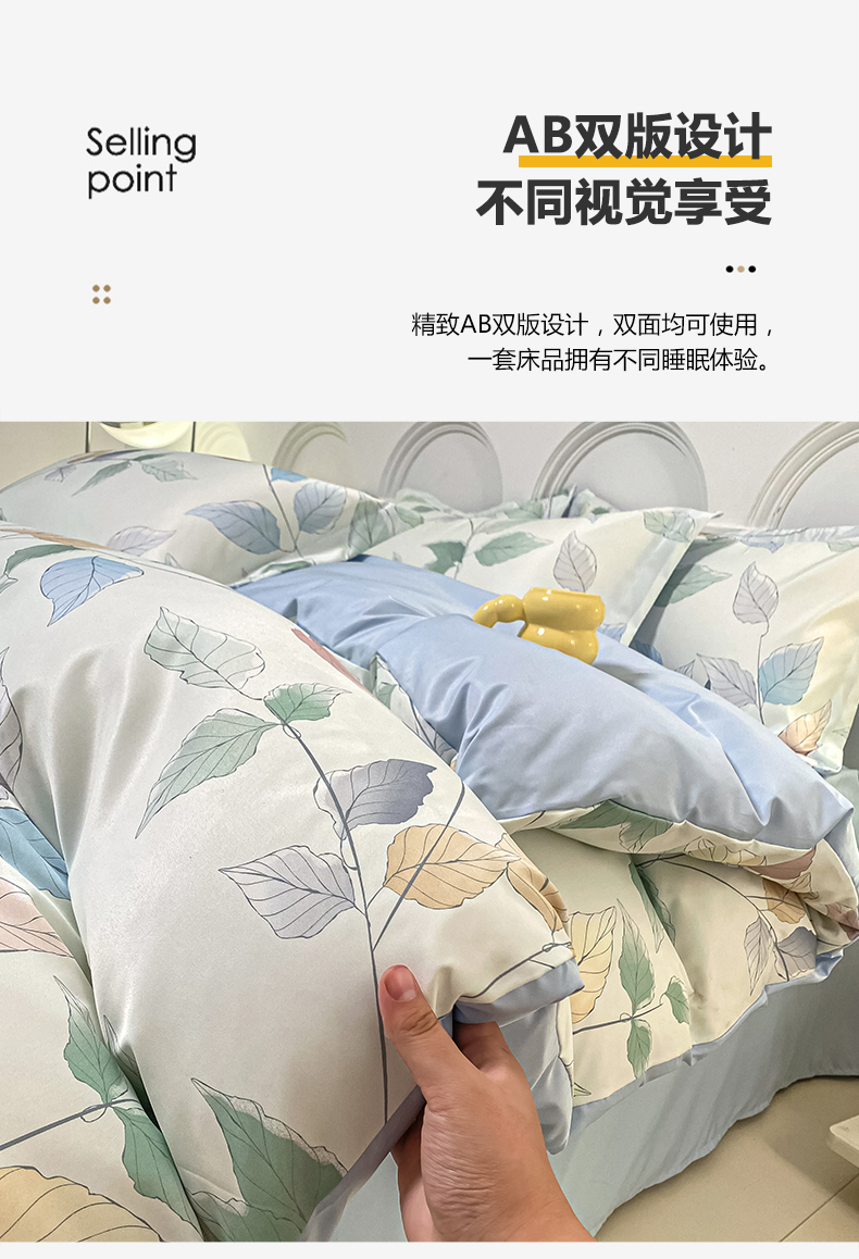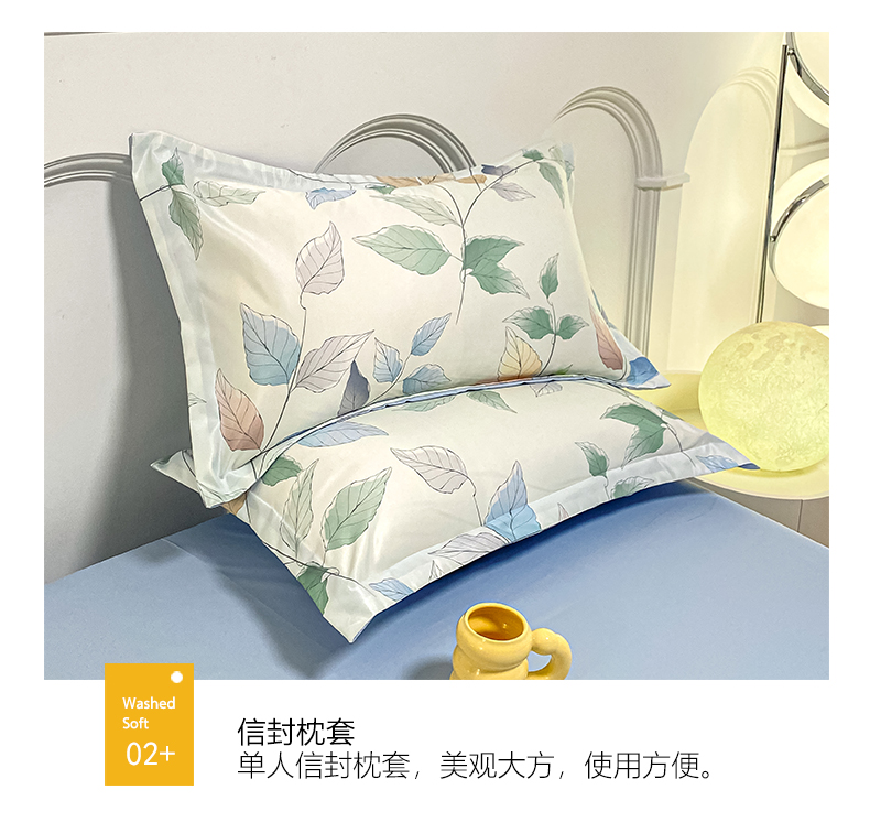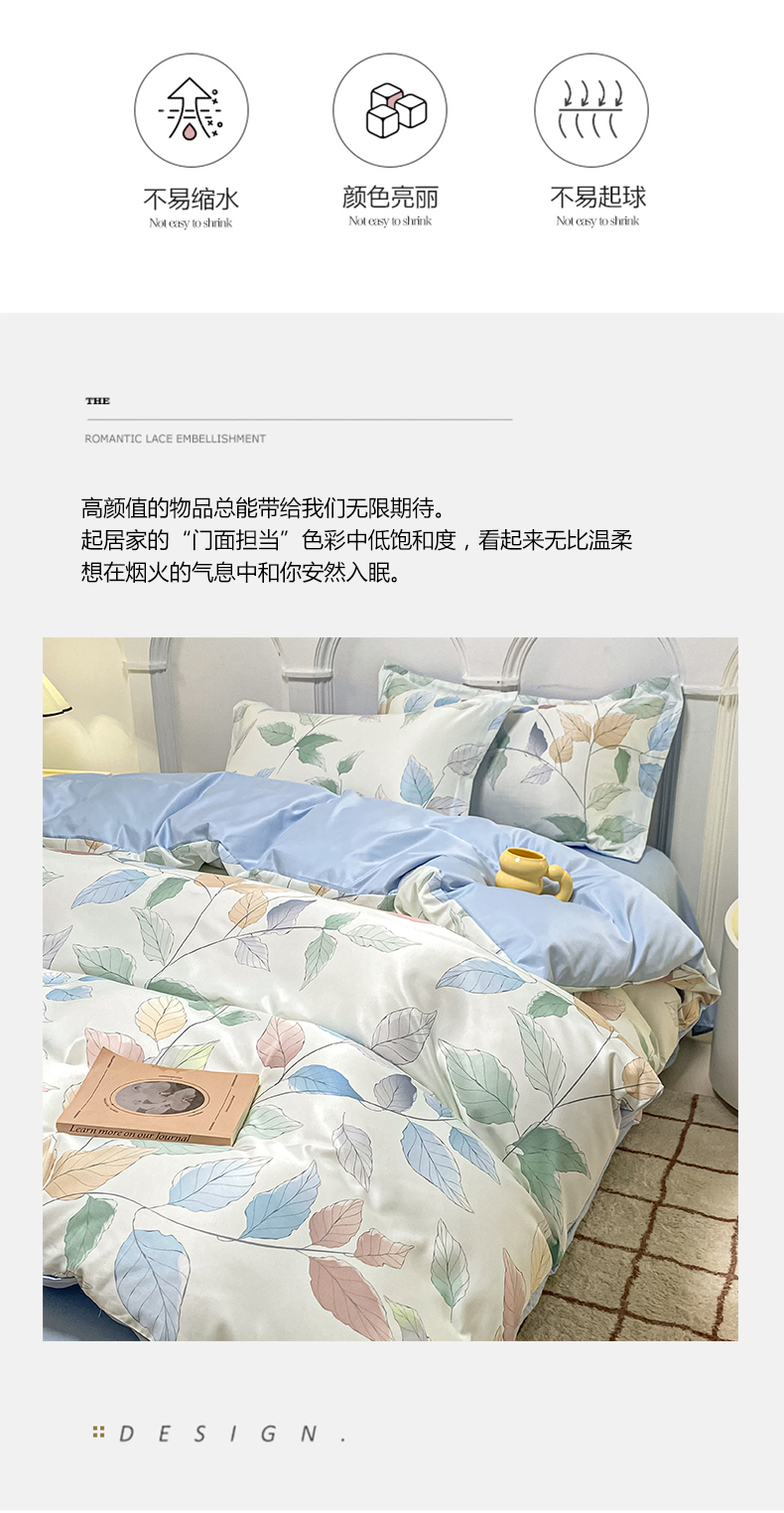 商品名称:2025新款水洗冰丝美式数码印花四件套轻奢时尚北欧风床上用品学生宿舍三四件套 柳叶绿