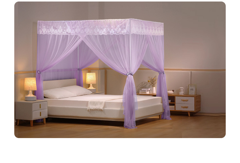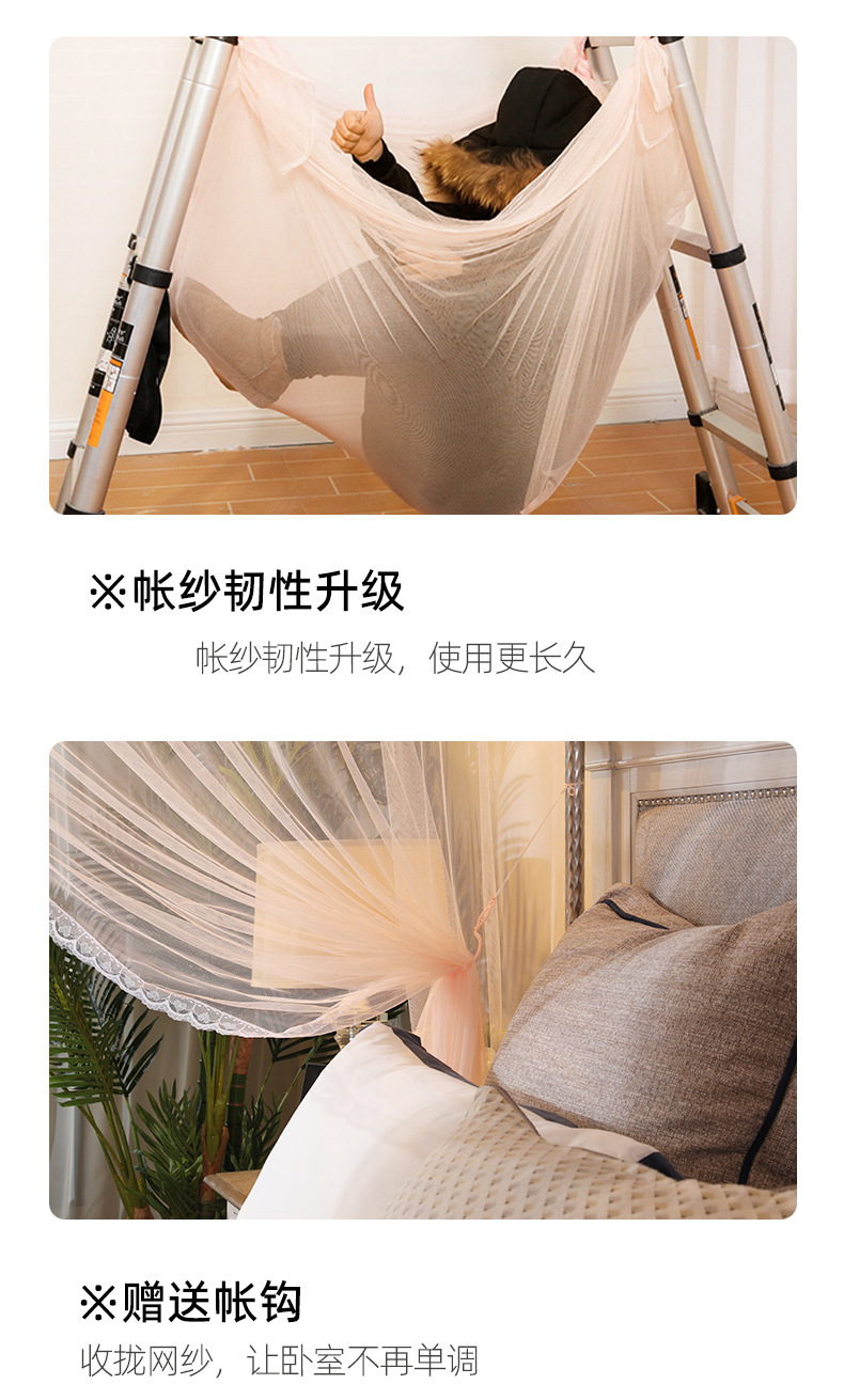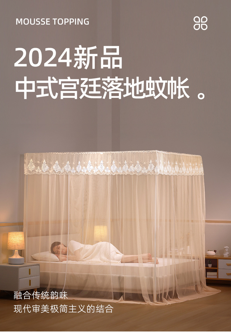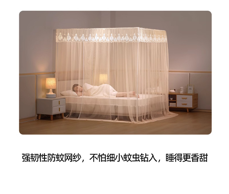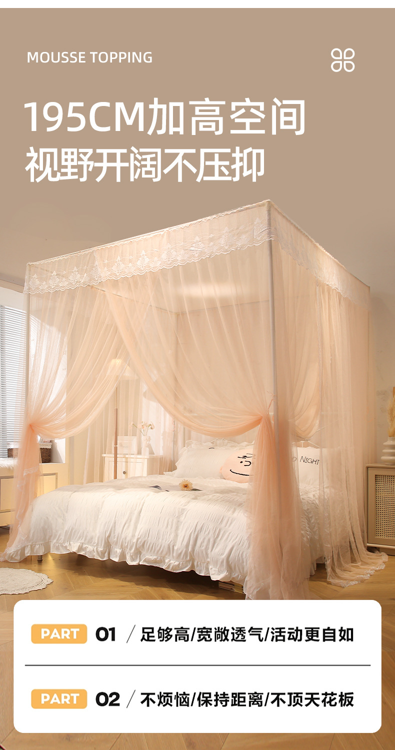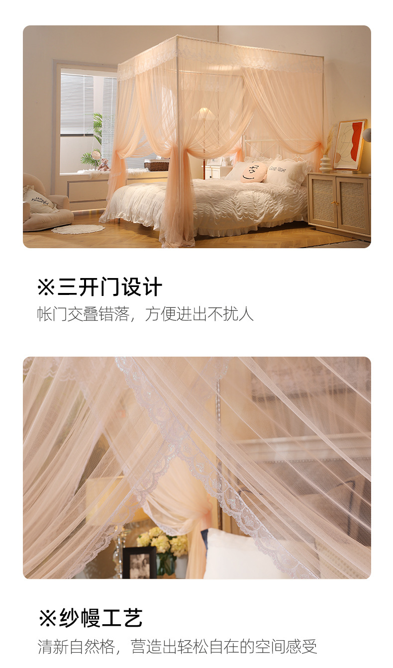 (总)三开门落地式宫庭蚊帐蚊帐家用卧室免安装带支架杆加粗