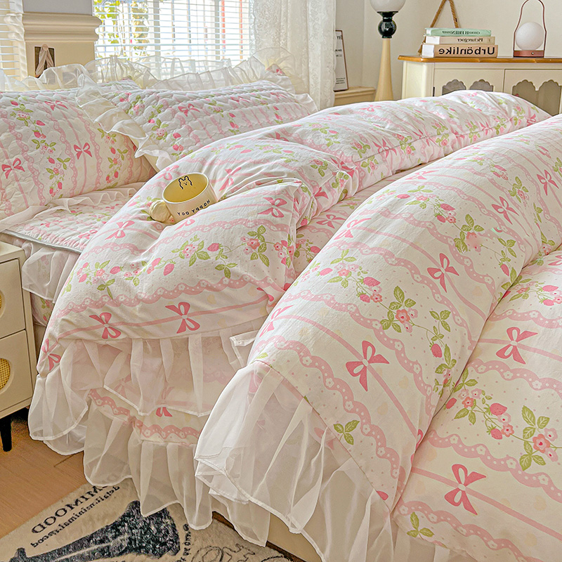 艾橙家纺 2025新款雪纺花边加棉床笠款单品四件套-单被套 妆立春风
