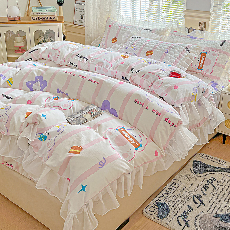 (总)艾橙家纺 2025新款雪纺花边加棉床笠款单品四件套-单床笠,妆立春风,半旧时光,彩色波点,丹妮狗,恐龙日记,茉莉兔,糖果草莓,微风许甜,心彩童话,樱之恋