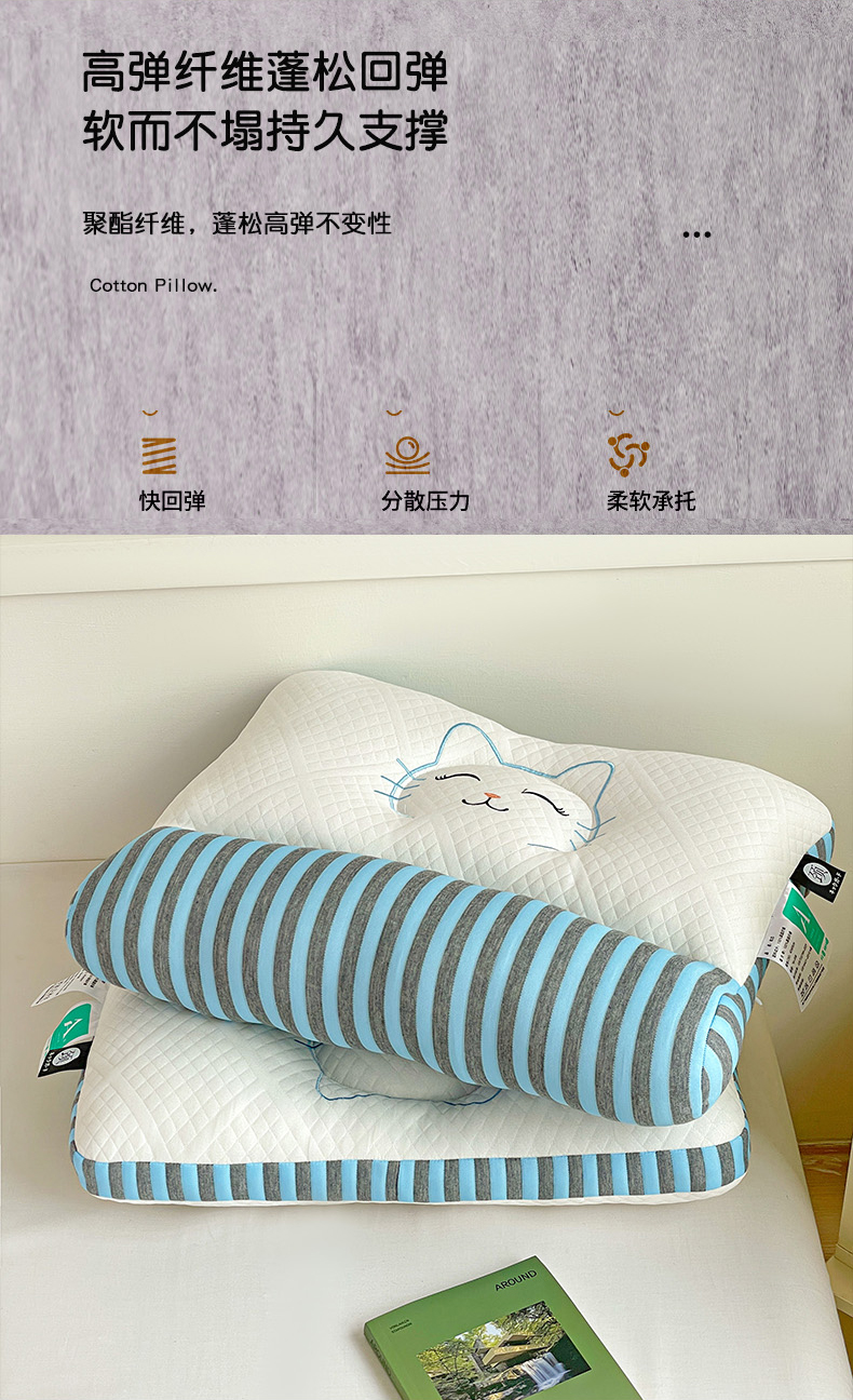 商品名称:卓昌枕芯 2025新款学生情侣笑脸猫护颈枕枕头枕芯 笑脸猫-蓝