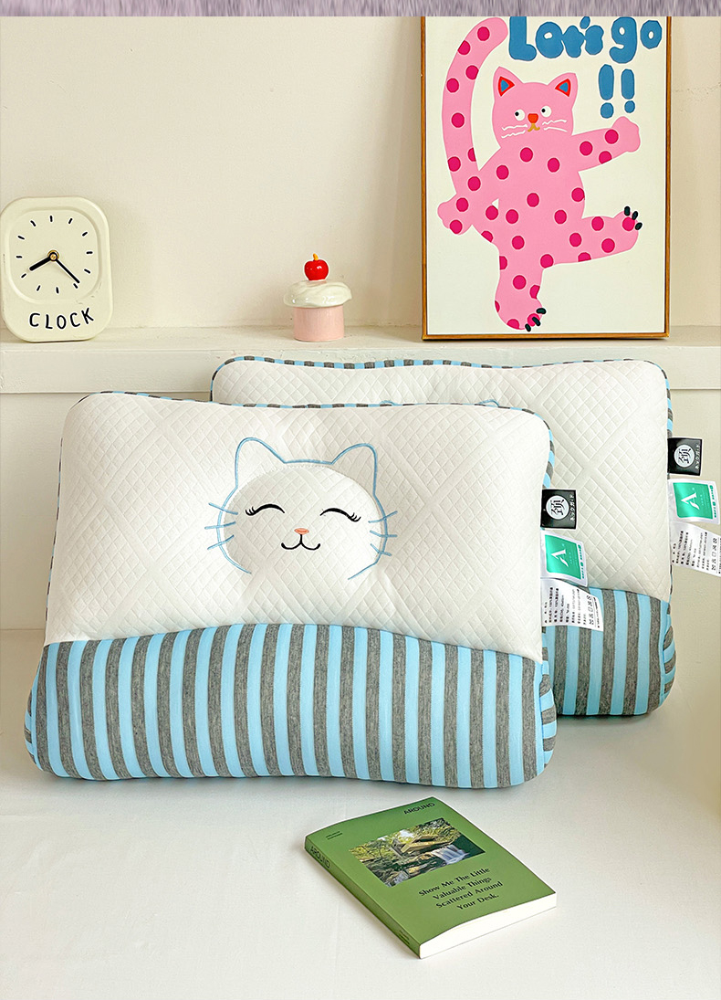 (总)卓昌枕芯 2025新款学生情侣笑脸猫护颈枕枕头枕芯,笑脸猫-粉,笑脸猫-蓝