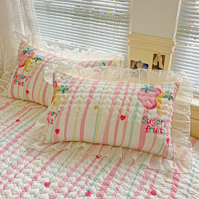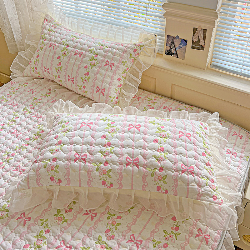 艾橙家纺 2025新款雪纺花边加棉床笠款单品四件套-单枕套 樱之恋