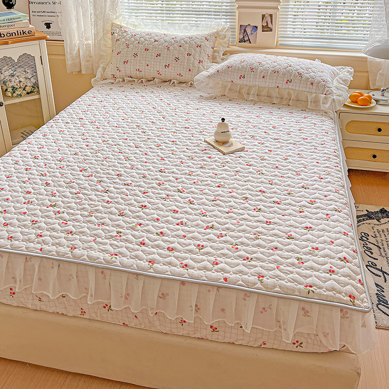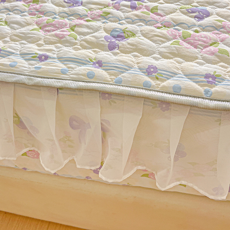 艾橙家纺 2025新款雪纺花边加棉床笠款单品四件套-单床笠 微风许甜