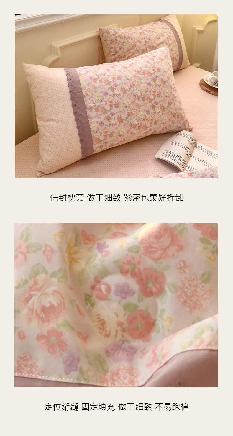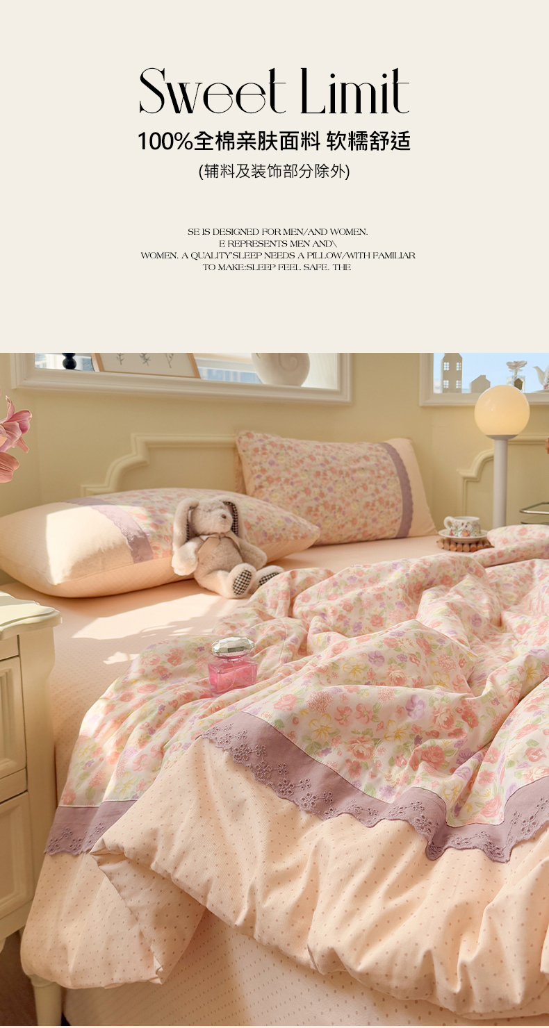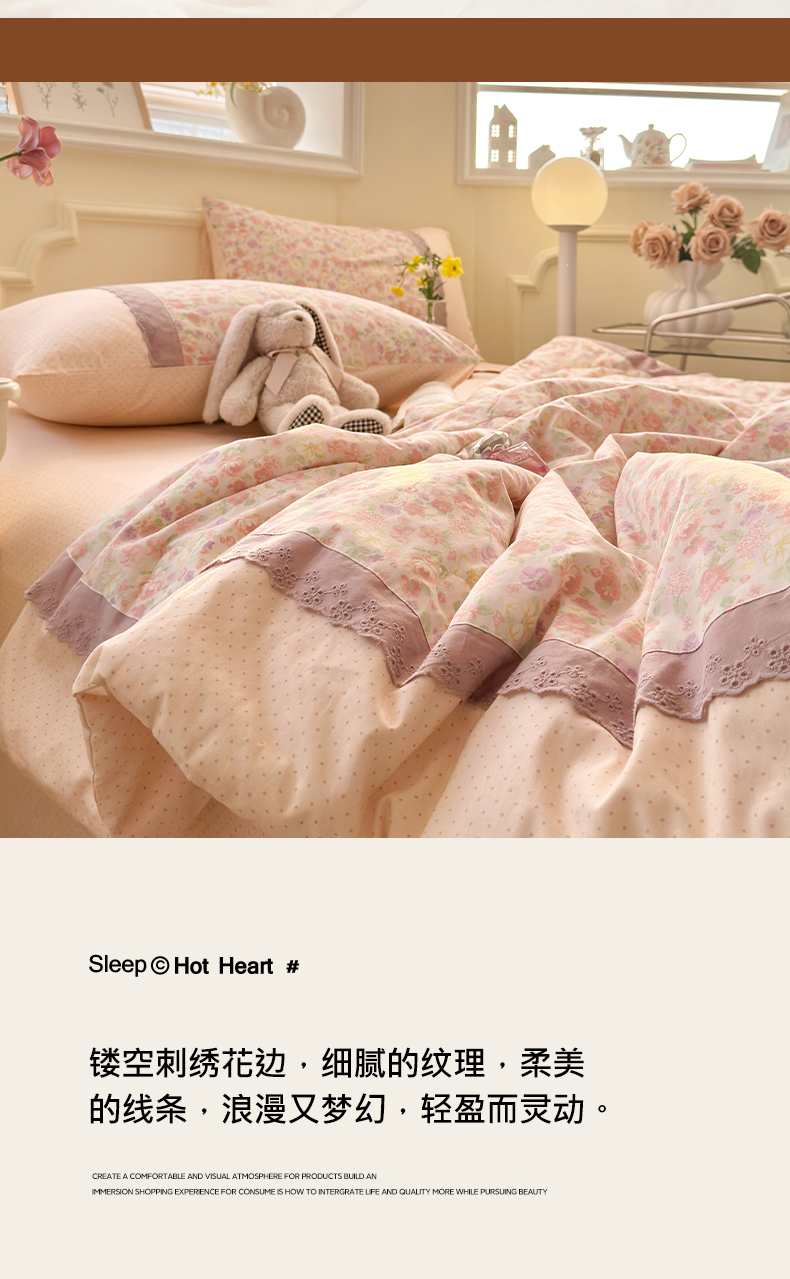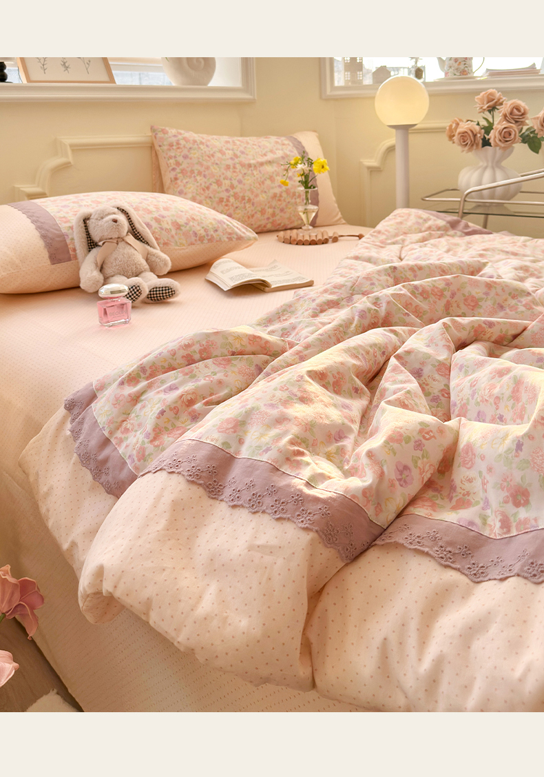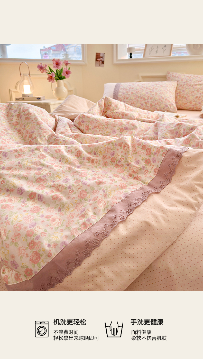 (总)安莱生活 2026年新品全棉纯棉小碎花刺绣花边款四件套-小碎花系列,花漾粉,花梦紫,凯特花园,漫语花,泡芙花园