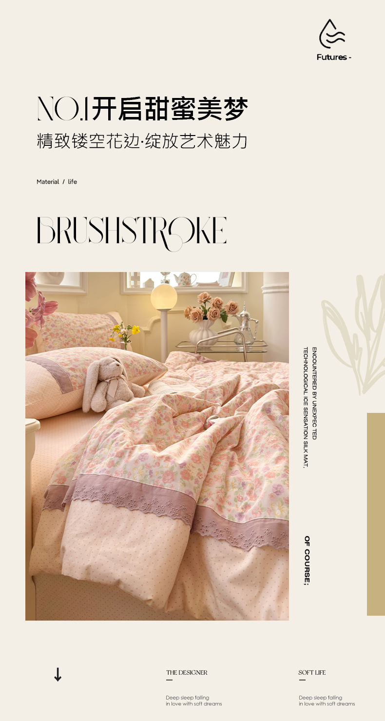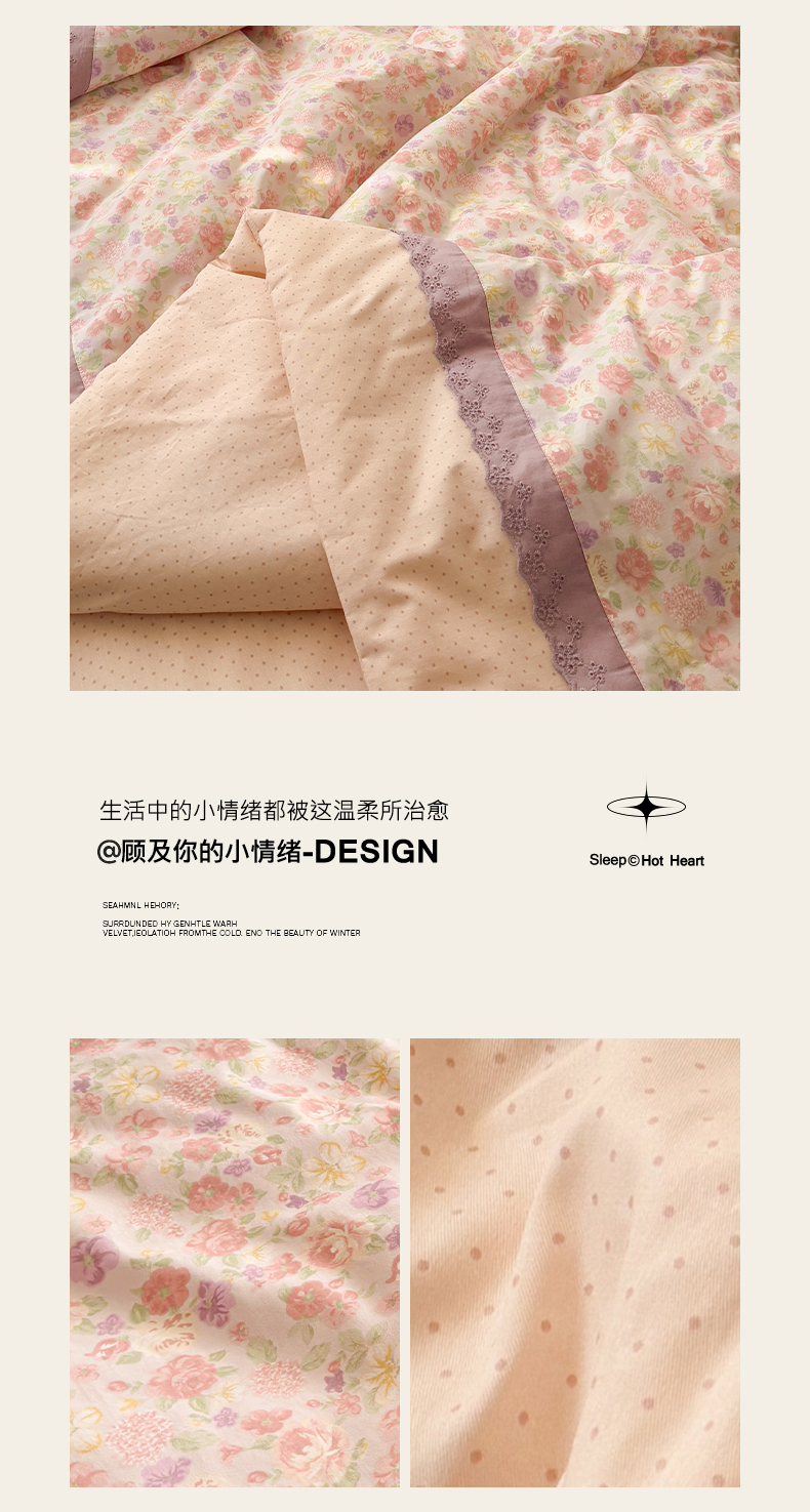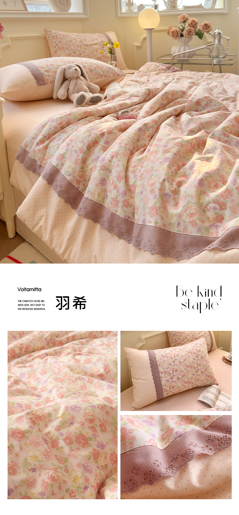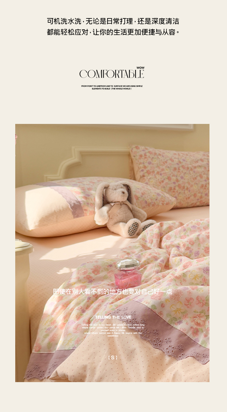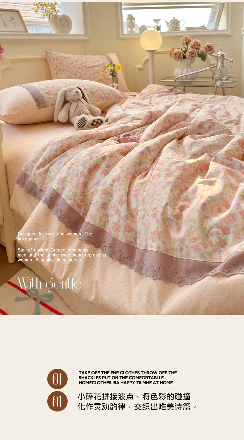 (总)安莱生活 2026年新品全棉纯棉小碎花刺绣花边款四件套-小碎花系列,花漾粉,花梦紫,凯特花园,漫语花,泡芙花园