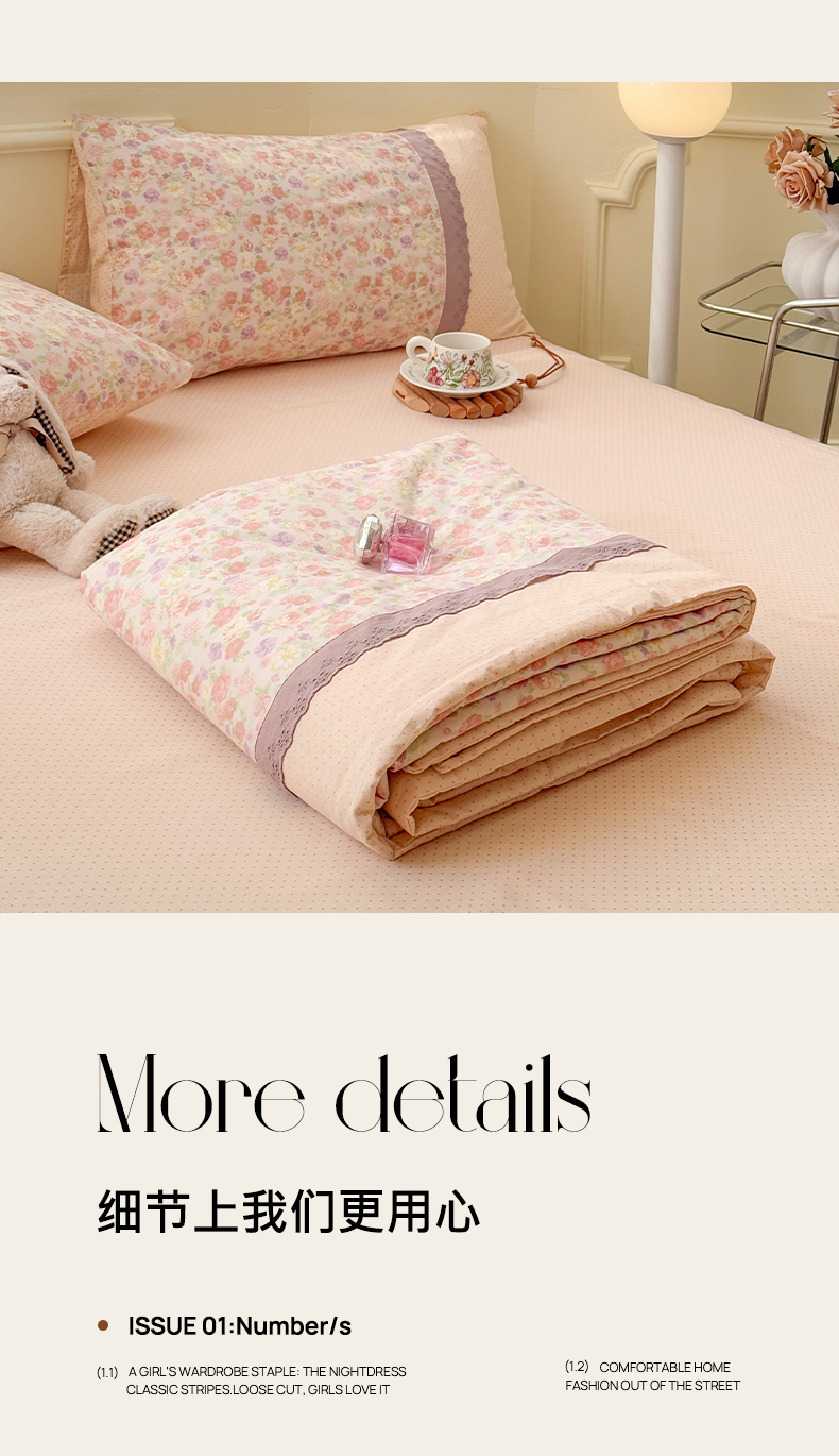 商品名称:安莱生活2025新款全棉纯棉小碎花刺绣花边款夏被夏凉被空调被 羽希