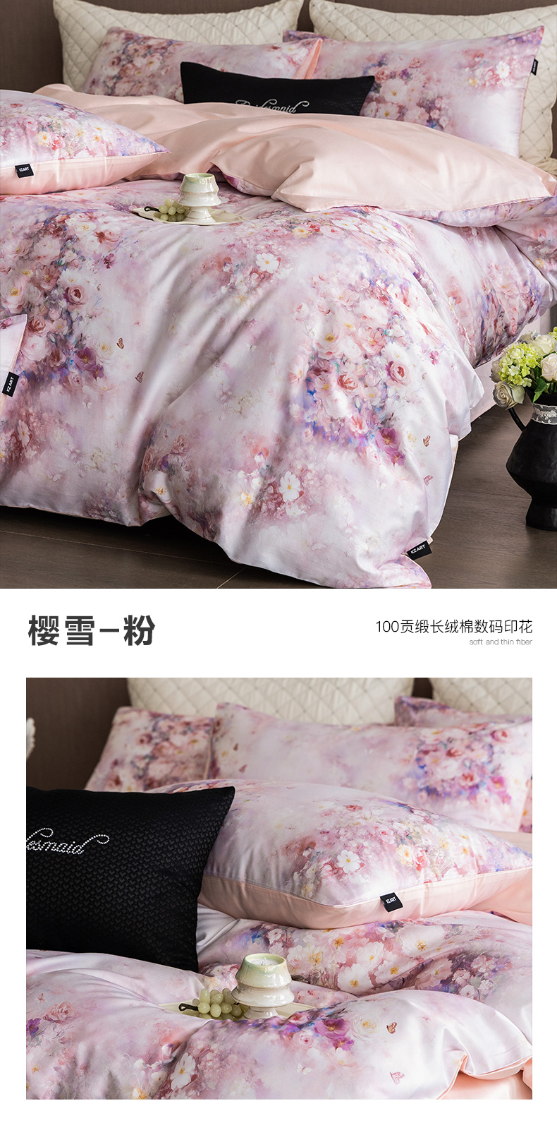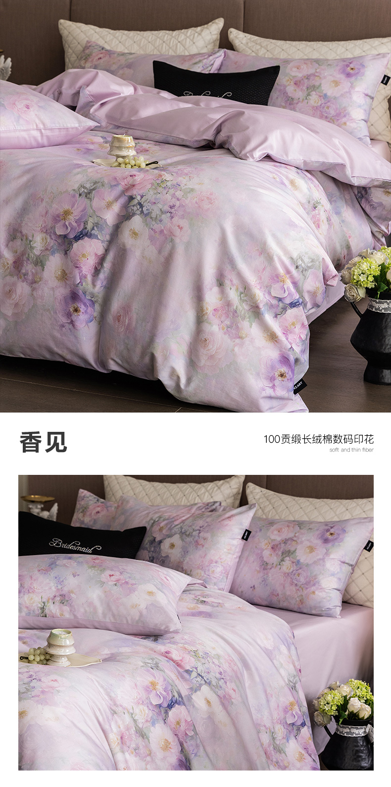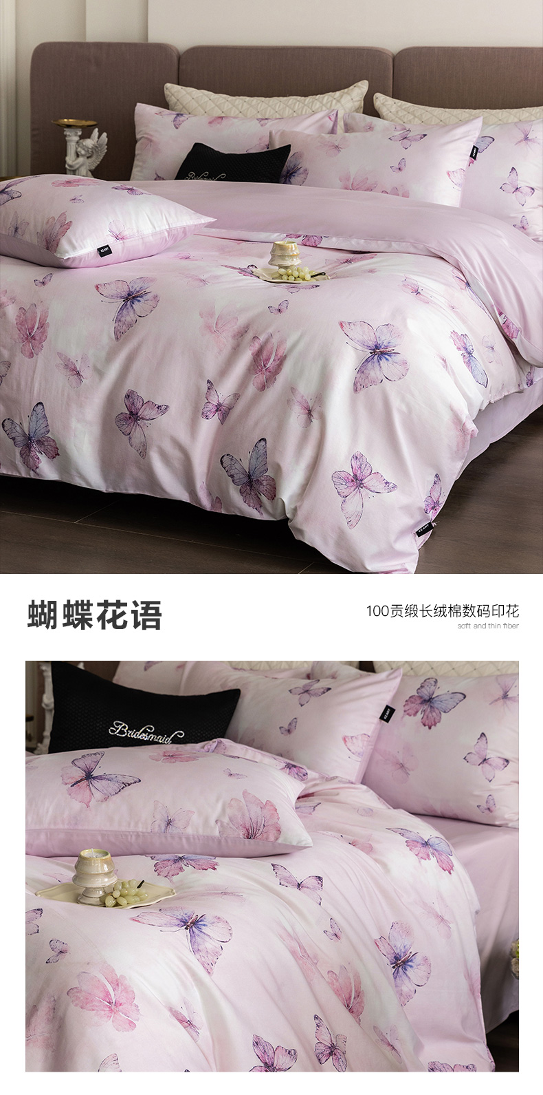 (总)佳汐蓝家纺 2025春夏新款贡缎长绒棉蝶梦花缘四件套,蝶梦花缘·粉,蝶梦花缘·紫